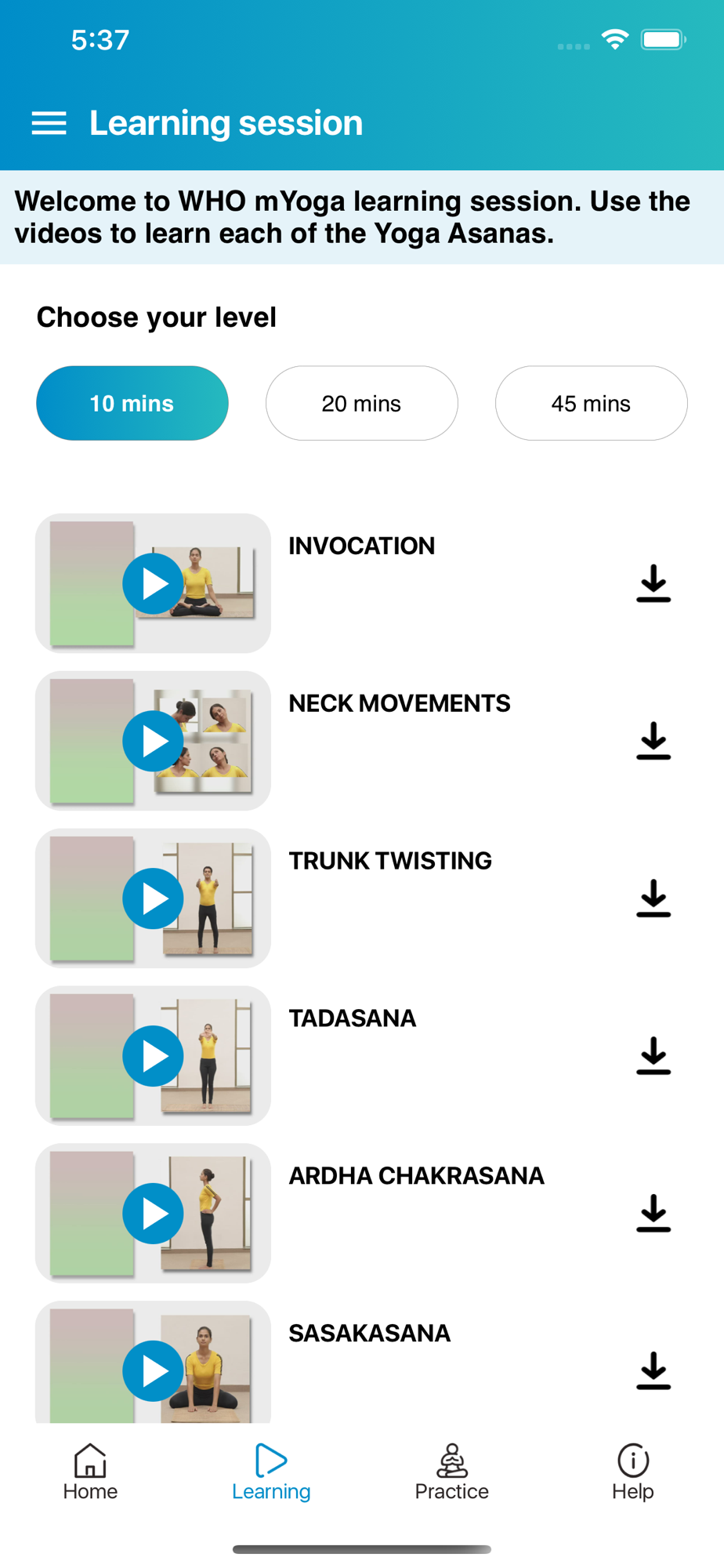 WHO launched its global Traditional Medicine Strategy 2014–2023 to strengthen the quality, safety and effectiveness of Traditional and Complementary Medicine. With support from the Ministry of Ayurveda, Yoga & Naturopathy, Unani, Siddha and Homoeopathy (Ministry of AYUSH), Government of India, WHO has developed the mYoga app to support the implementation of the strategy and encourage people to practice Yoga at the touch of their smartphone screen.