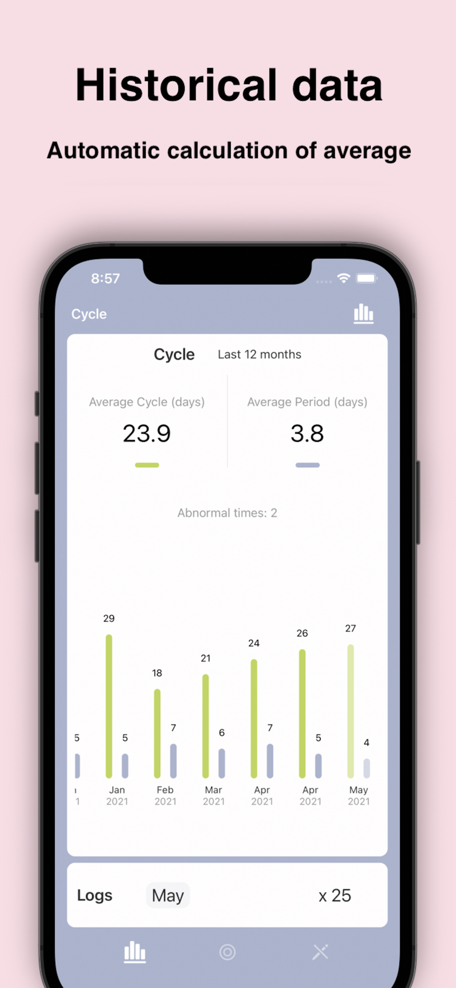 ● Exclude abnormal data. After turning on the automatic cycle calculation mode, the App will automatically calculate the average value based on your menstrual data in the last 12 months and exclude abnormal data. Of course, you can also manually exclude or include certain data according to your needs.