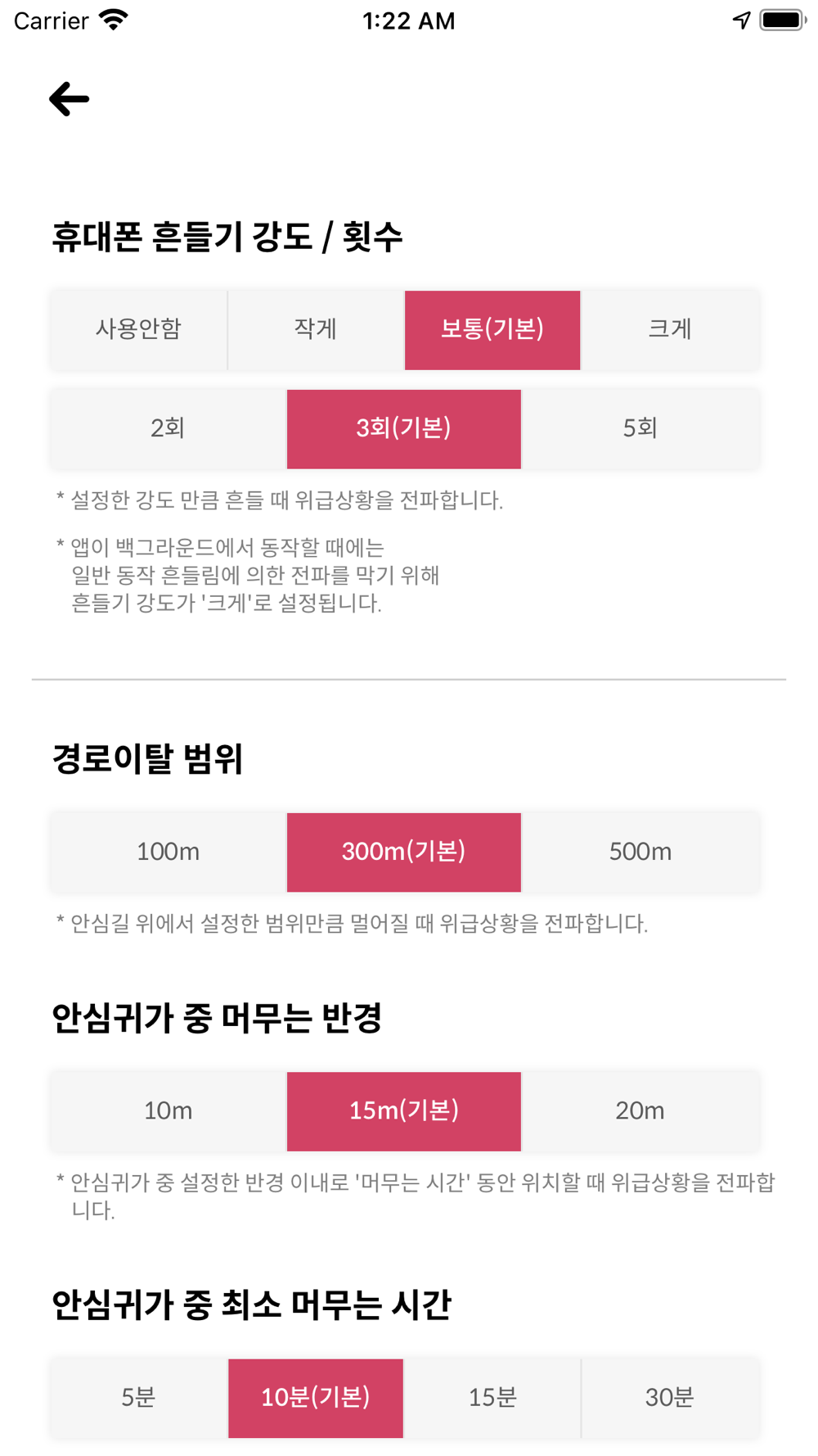 보호대상자가 위급한 상황에 처하게 되었을때 비상 호출 시 관제실, 보호자가 즉시 상황조치를 할 수 있도록 기능을 제공합니다.