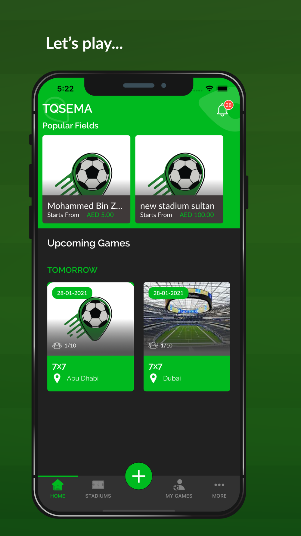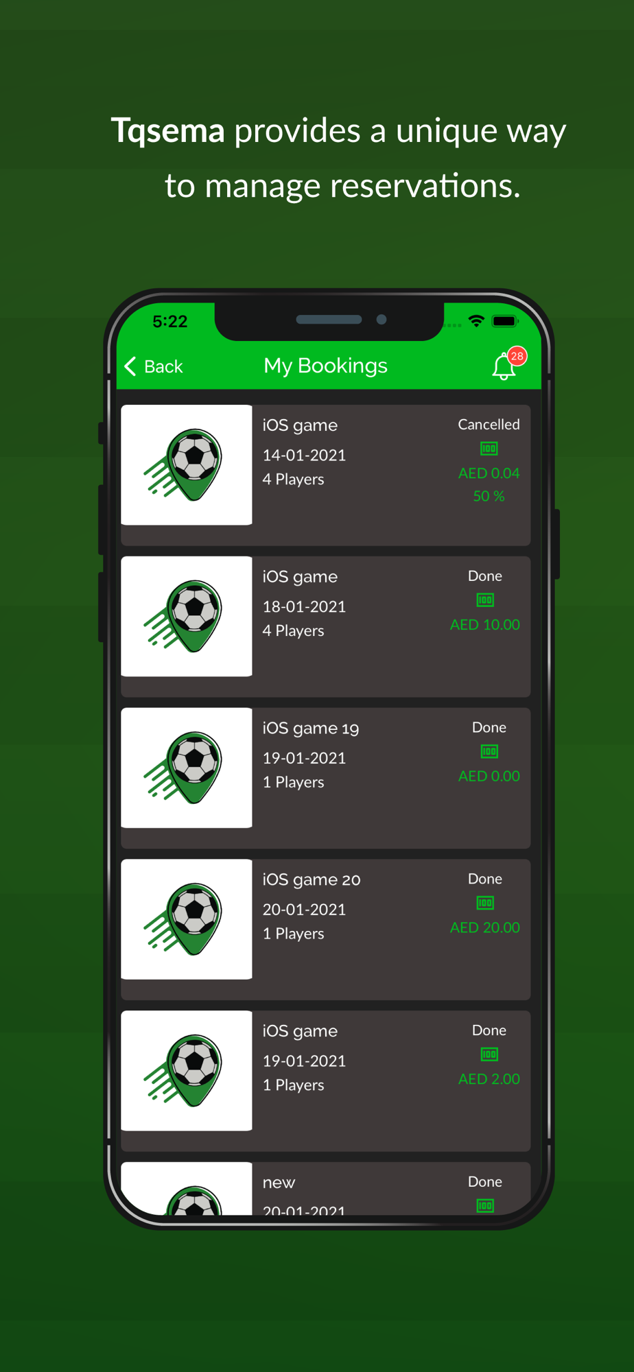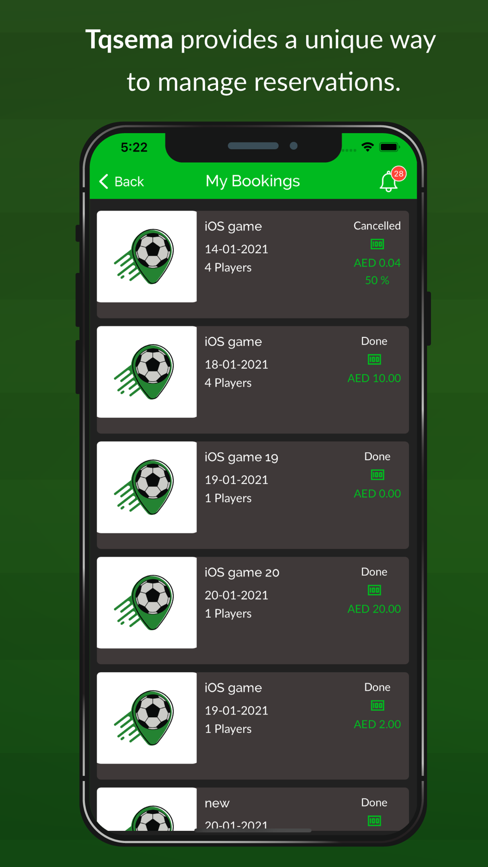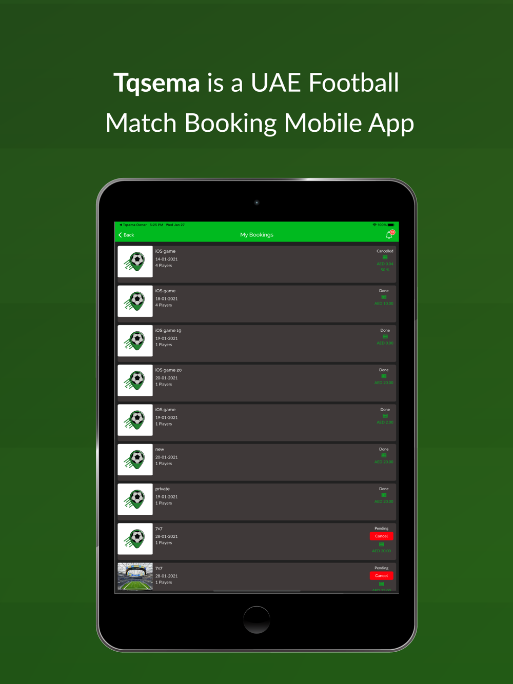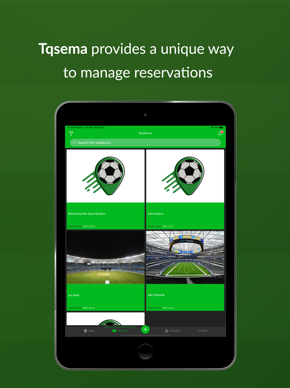 Tqsema App is for reserving football stadiums, the best application that provides players to reserve the right pitch for a distinctive football. It gives stadium owners the ability to add their stadiums and market them through a special space to display the stadiums they own and add specifications for each stadium and a lot of great features.