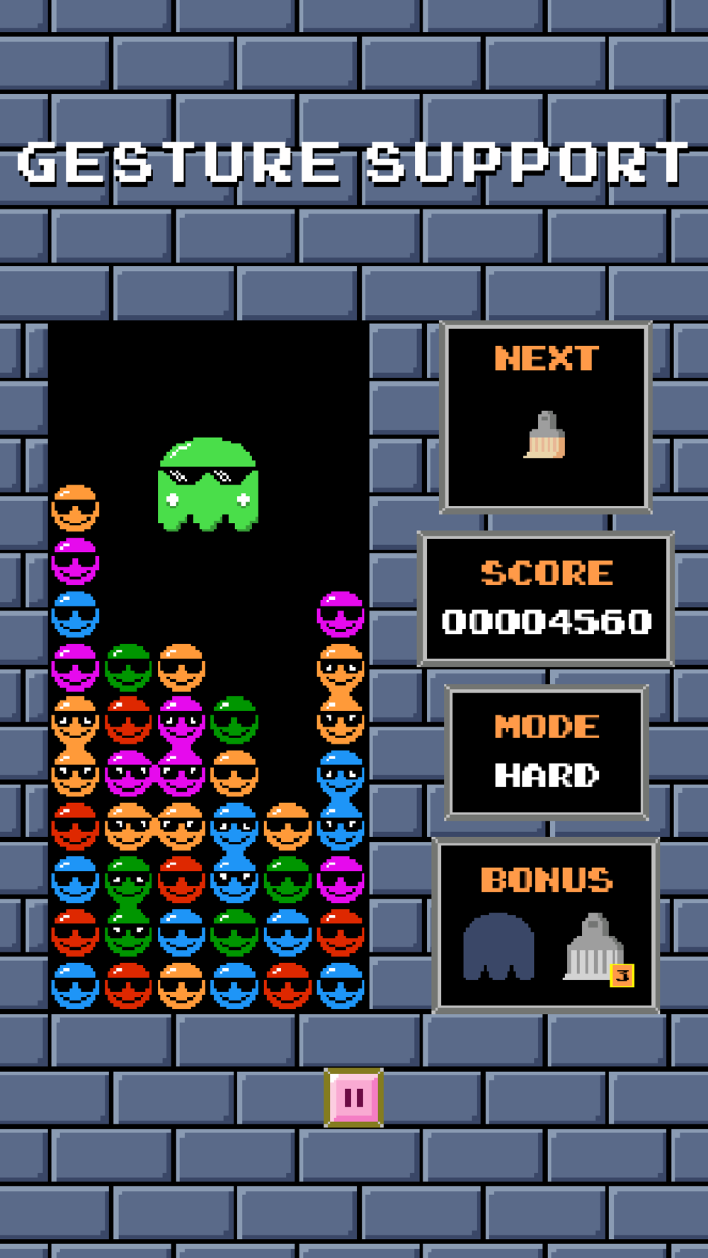 Smiley Chain is a classic game that has falling group of 2 smilies from top of the screen. The pieces can be moved, dropped, and rotated as they fall. The piece falls until it reaches another smiley or the bottom of the screen. When four or more smilies of the same color line up adjacent to each other, the smiley will connect to each other, blinking and disappear. Smilies of the same color can connect horizontally or vertically, but not diagonally.