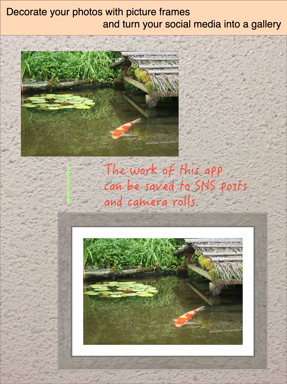 Of course, if you decorate it with a realistic picture frame, it will be a wonderful work, but even if you do not decorate it with a realistic picture frame, you can easily change it to that atmosphere with this app.