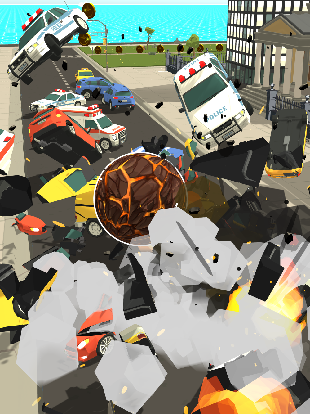 Throw the ball and wreck the entire city! Can you reach the golden building?