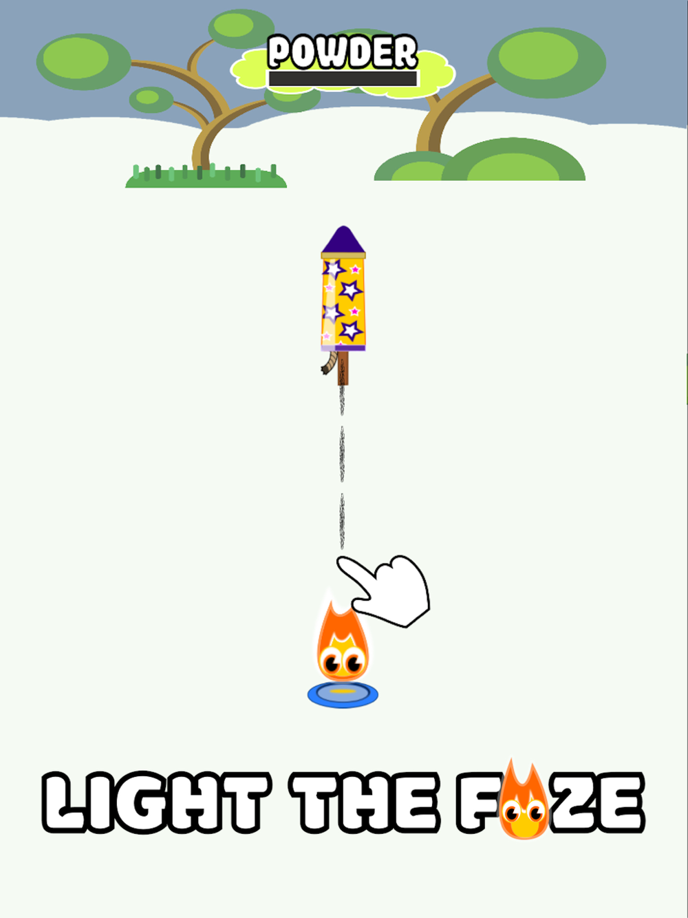 Keep your flame alive while laying your powder trail. Set off each firework to complete the levels.