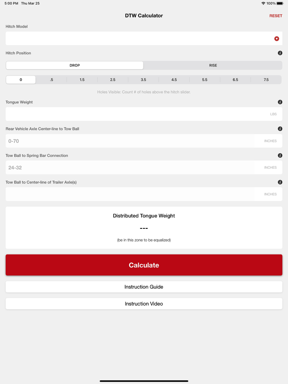 The Weigh Safe Dealer app is built for the Weigh Safe True Tow Weight Distribution Hitch. It provides a way to properly calculate the required distributed tongue weight for the True Tow Hitch for a safer tow.