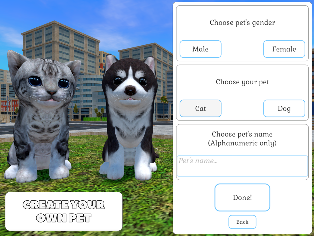 In Cute Cat And Puppy World you can get a sweet puppy or a kitty, that you should name; you should play with them and take care of them. If you do not pay enough attention to your pets, they will be very sad.