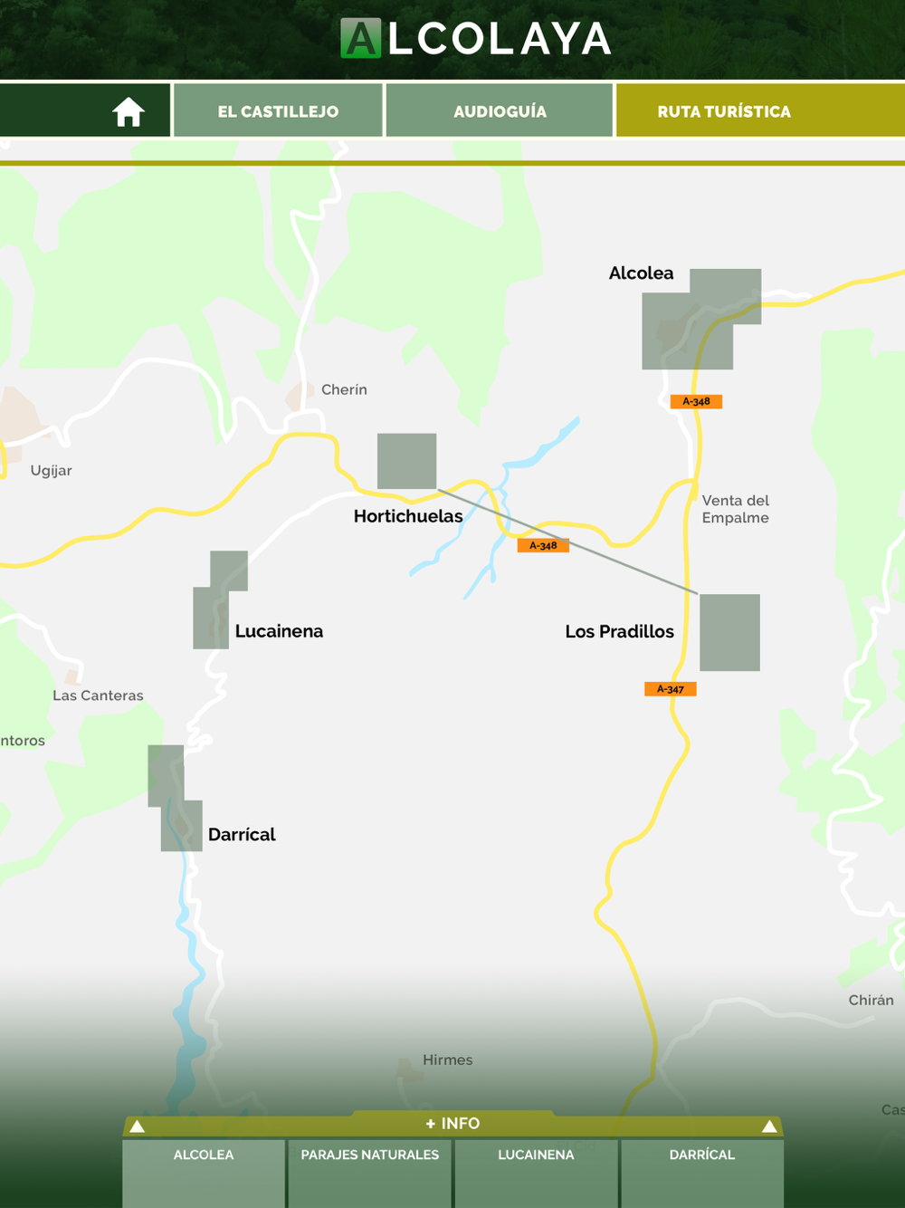 The walk begins in the northern zone of Alcolea heading towards Laujar. Follow the PR-A 297 El Castillejo footpath, which takes you on a journey of the senses back to medieval times with its natural landscapes and farmland before following the icy waters of the river south. The walk then leaves the footpath, climbing the hill on the left leading to the town. The route passes through the town and its Arab vestiges until we end up surrounded by centenary olive trees on the old Ugíjar road.