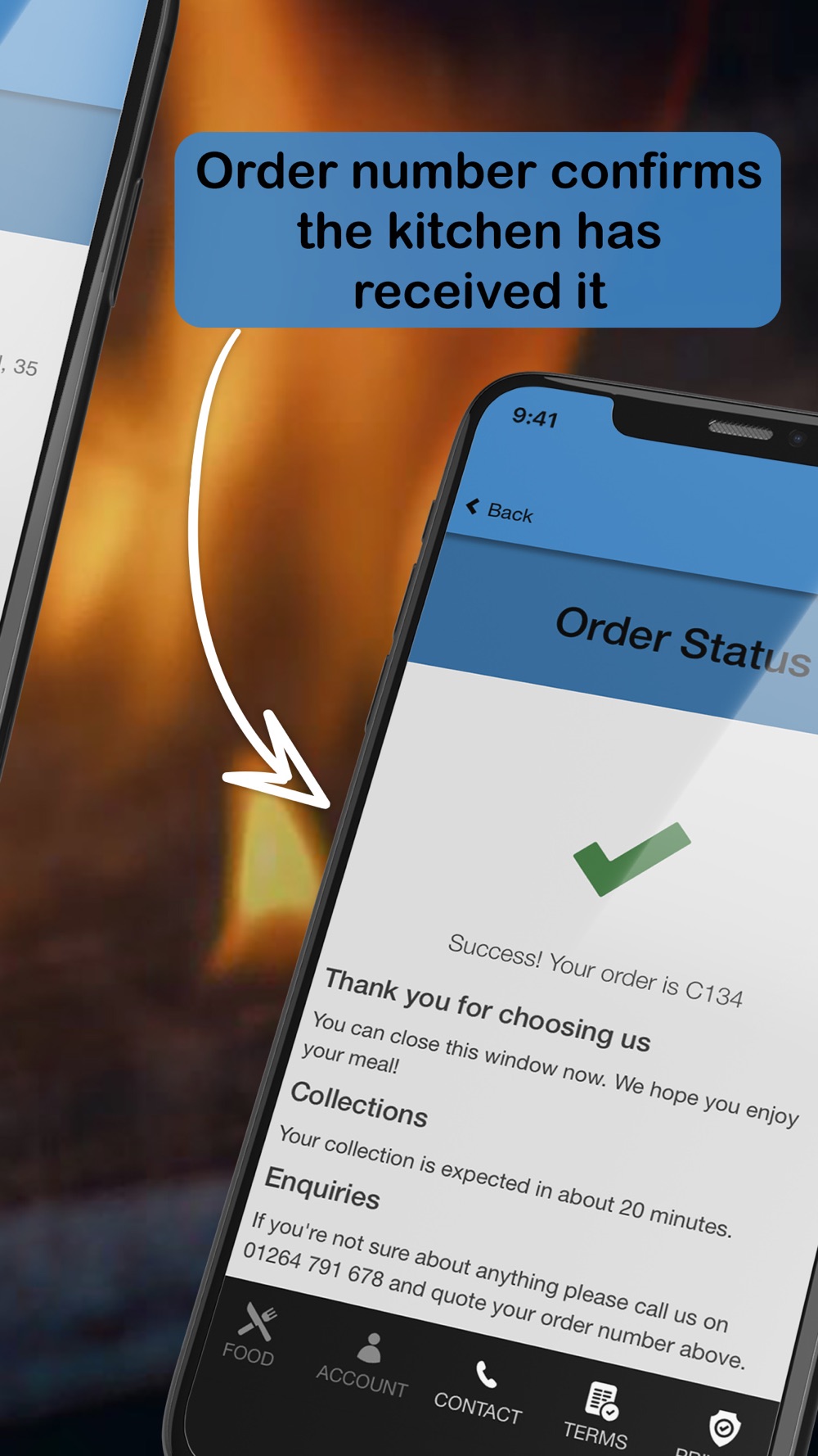 If you have made a card payment but the order has not been sent to the restaurant due to a technical fault, please call 01264 791 678 as soon as possible. They know who to contact and can verify your payment quickly.
