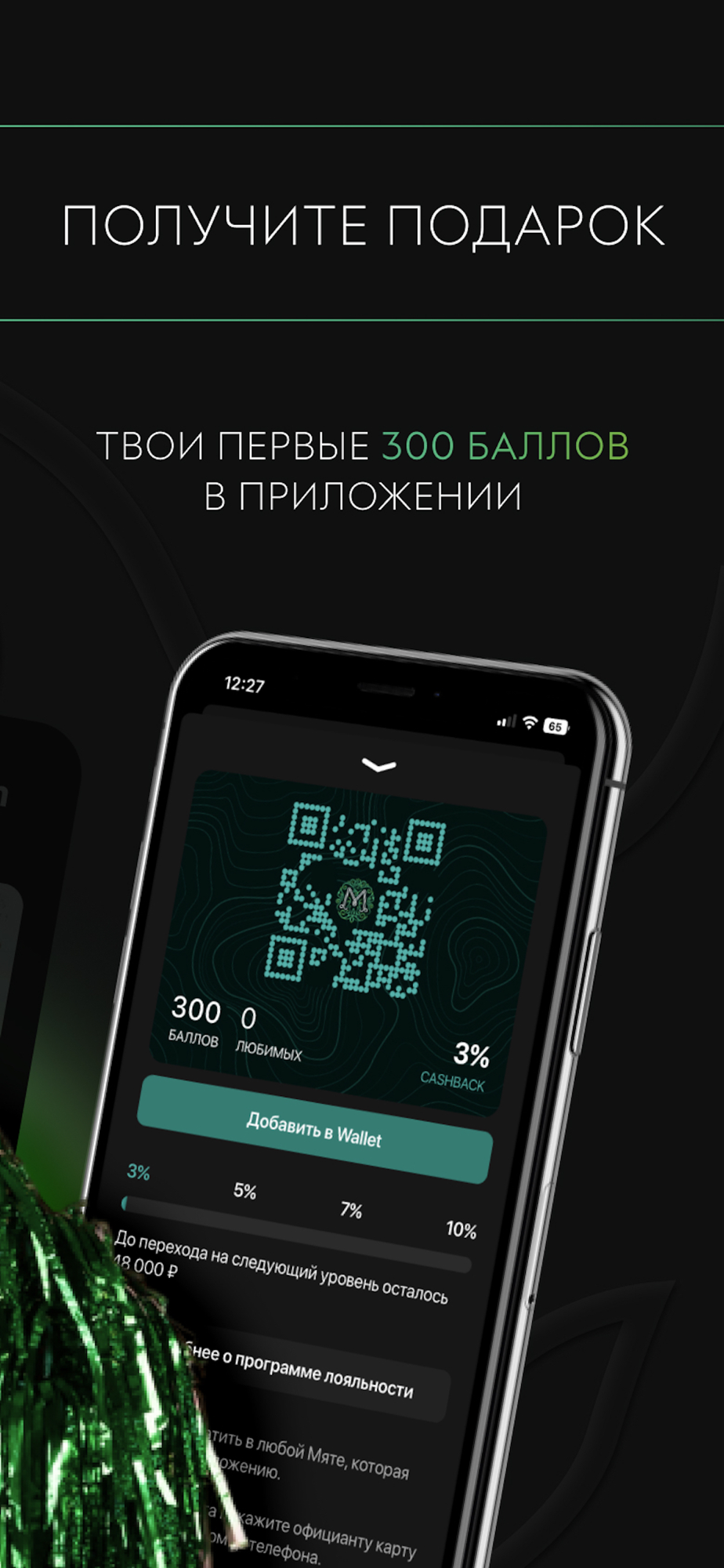 При установке приложения вы получаете 300 приветственных бонусов, которые можете потратить при первом посещении.