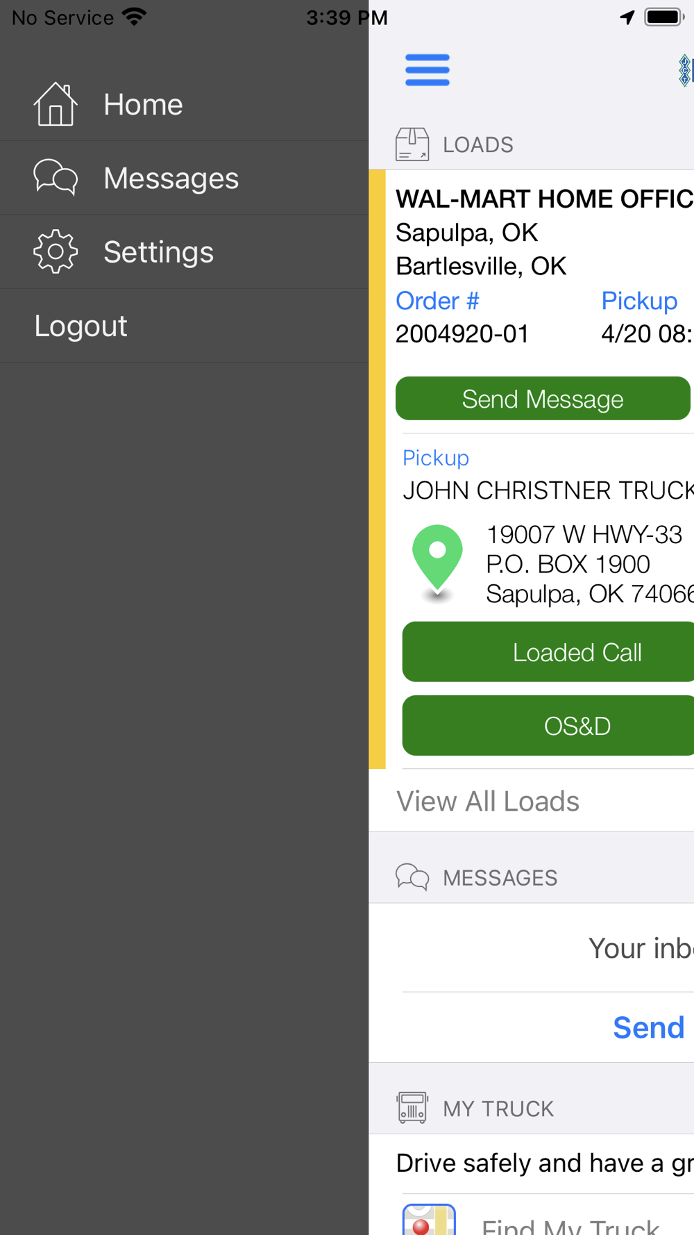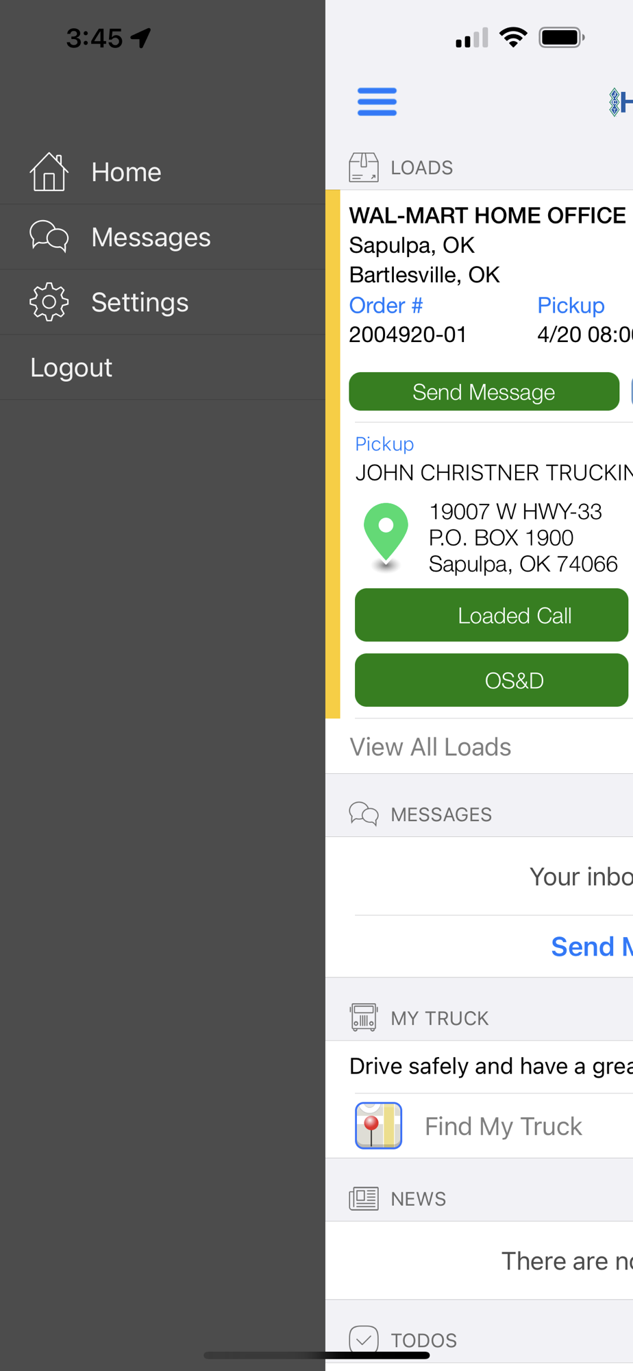 The John Christner Trucking Mobile Application was designed with our drivers in mind. The core aspects of the app are its simply presented load information with east to access electronic log features and asset inspection. Within the app, you'll find that you can view your load detail, view maps, navigate, capture and submit images, report OS&D, safety related issues, access training or documentation and see current company news. We will be updating and improving the app through your feedback and suggestions!