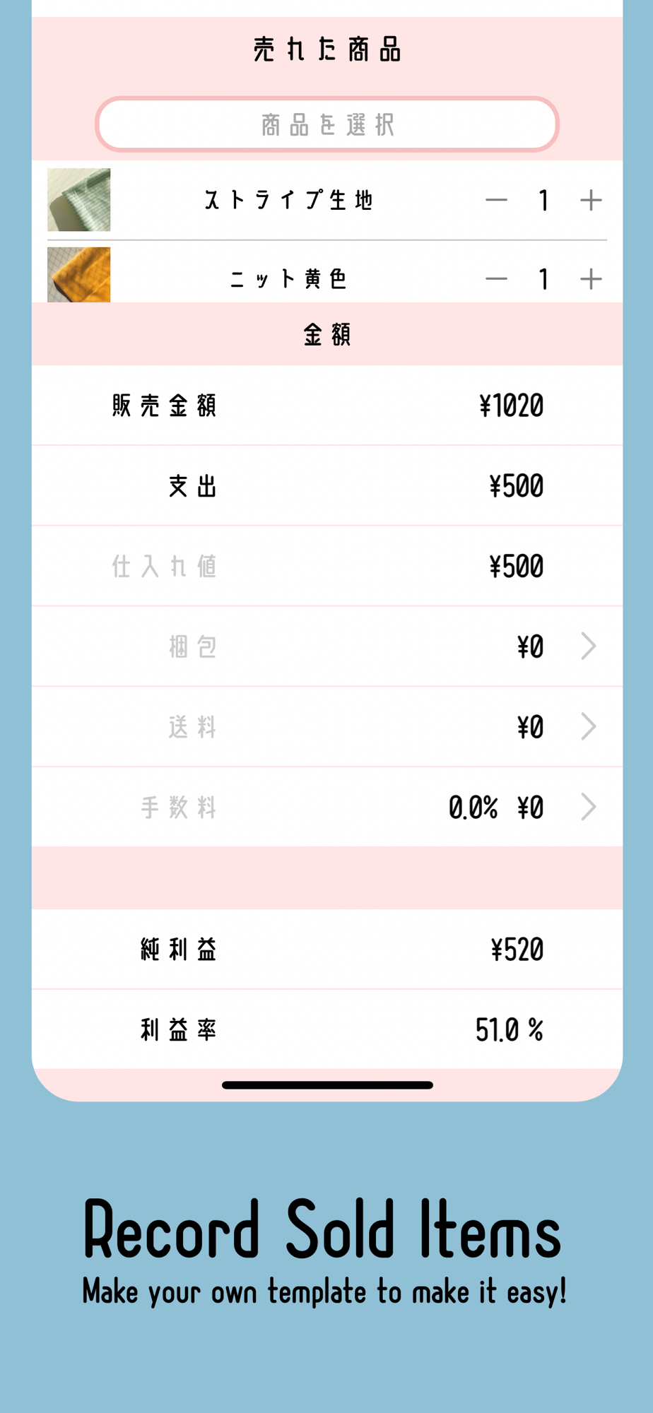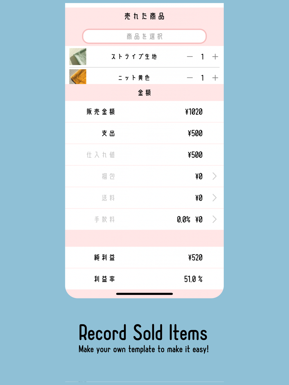 ・Automatically Calculate Profit Percentage, cost rate, and net income.