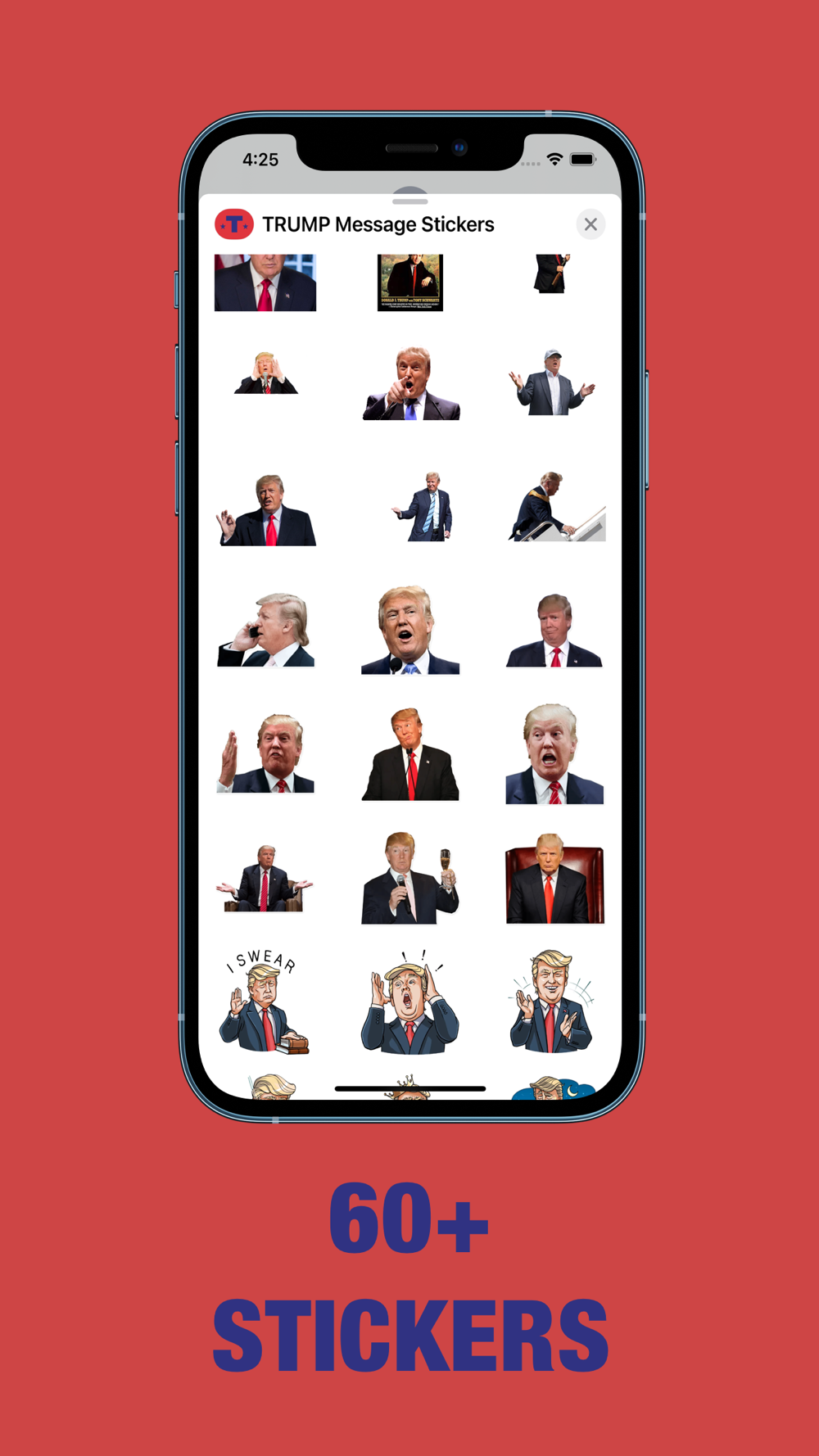 Express yourself in over 60 exciting ways using TRUMP Message Stickers! Start adding the 45th President in your texts to spice up any conversation. Whether you want to say hello or happy birthday, Trump's expressions fit every occasion.