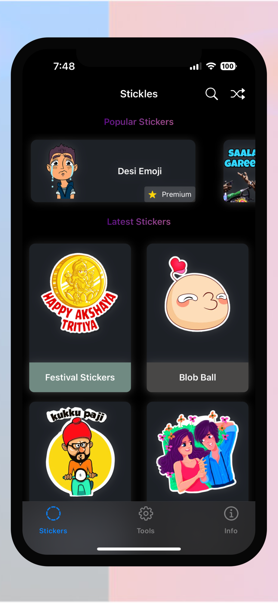 Download this App & get 250+ Sticker categories to share with your contacts on social messaging apps.