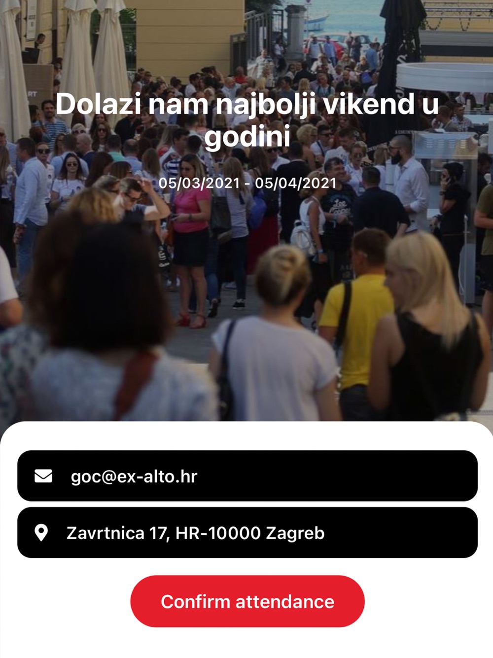 EX-ALTO d.o.o. is the first Croatian agency which is providing experiential marketing & tourism services. In tourism mainly creating tourism experiences through leisure and entertainment in hotels and local communities, EX-ALTO d.o.o. is operating in almost all significant Croatian tourist destinations with services which include a complete guest experience & destination management concepts in cooperation with local tourism boards, hotel companies and other partners. Experiential marketing services are mainly being produced as events and creative guerilla concepts that go well along with new media platforms.