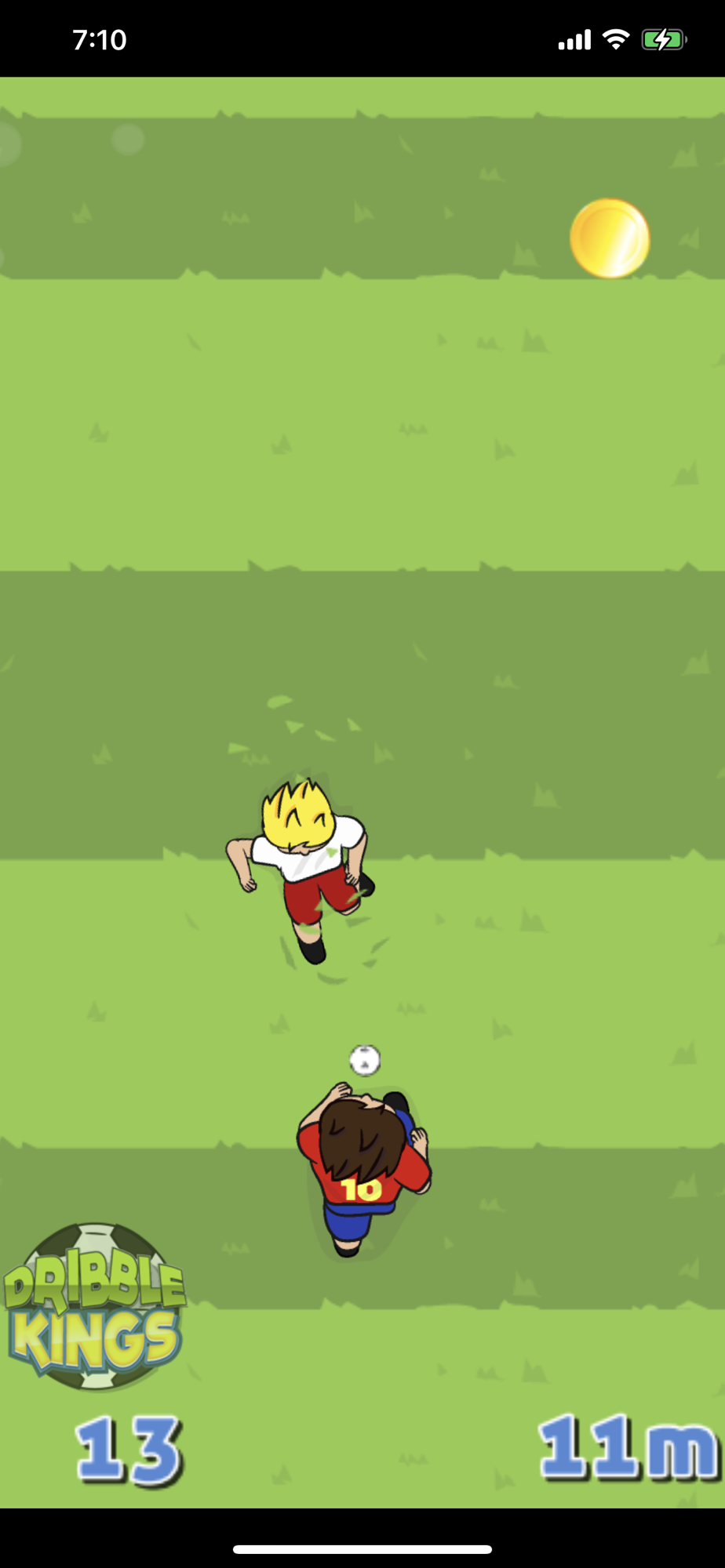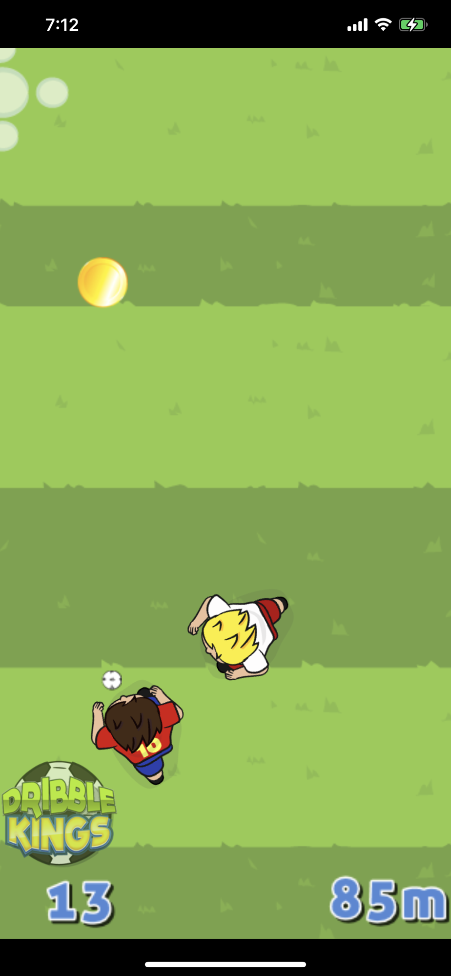 In Dribble Kings you play a centre forward who is running with the football, you have to control the footballer by dragging him from one part of the pitch to another while he runs at a quick speed, in the process you have to avoid a barrage of skilled defenders whose hard hitting and greatly timed slide tackles prove their thirst for the ball, simultaneously you have to dribble your player through goalposts and coins to accumulate a higher score. The further you can travel with your player without getting tackled, the higher is your score. The controls are a tad bit complex but they take barely minutes to get used to and the more you play this game, the better you get at it.