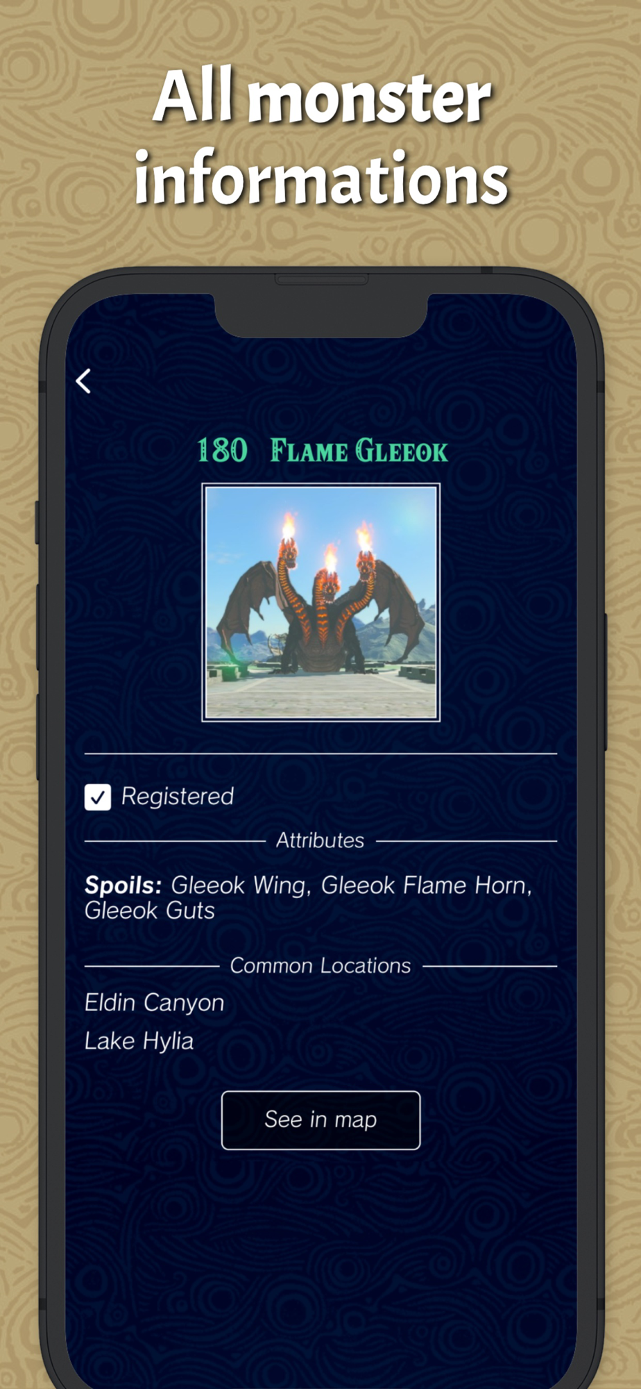 Hyrule Compendium is a third party App. The developer of this software is not affiliated with Nintendo Co. Ltd. in any way. However, the creation and maintenance is permitted until withdrawal from Nintendo.