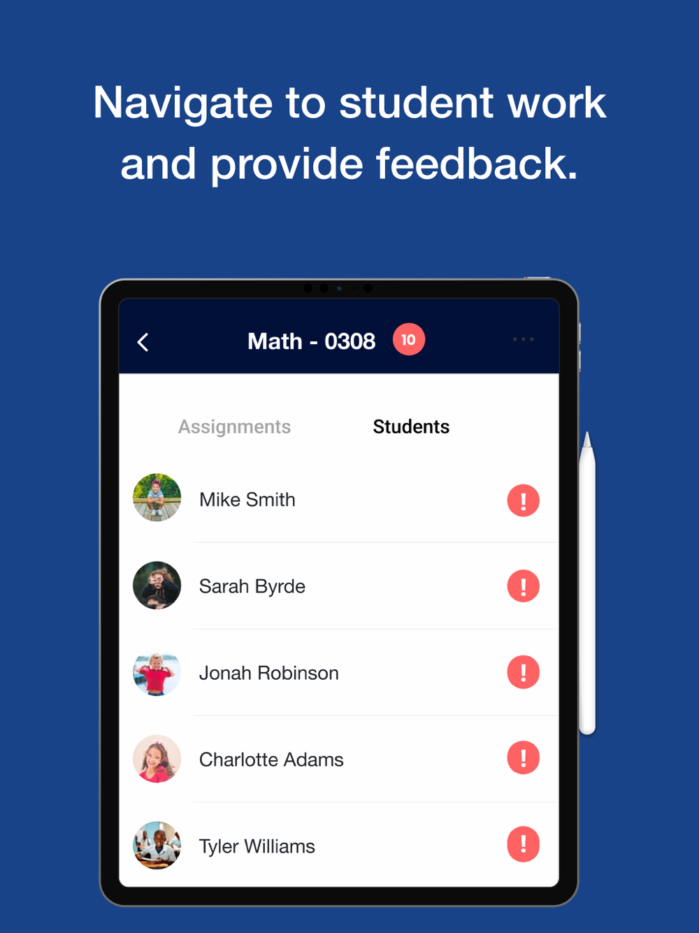 • Whiteboard - Students use their finger, stylus, or text tools to complete and submit assignments on the whiteboard. Teachers receive the assignments and provide detailed feedback on student work, by directly marking up student work with corrections and next steps for improvement. Students access and implement the feedback to make changes to and correct their assignment.
