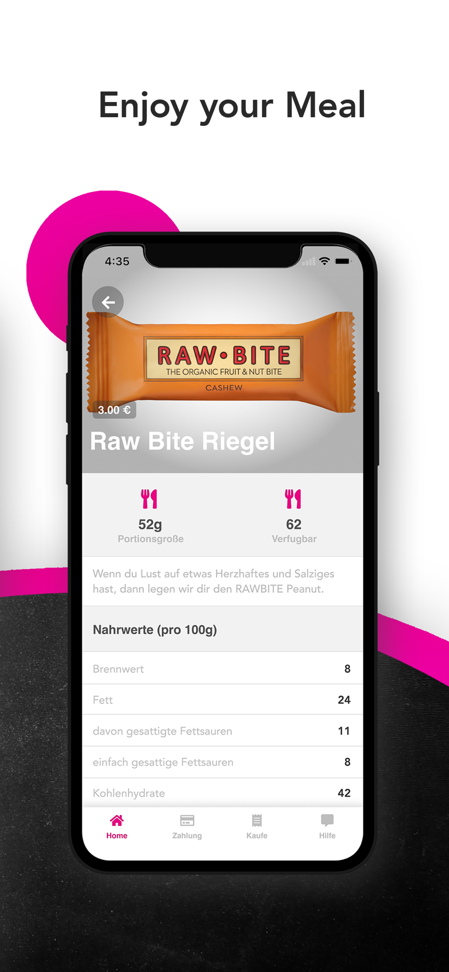 The OHA app shows you at any time of the day what delicious and balanced food is waiting for you in your smart kiosk.