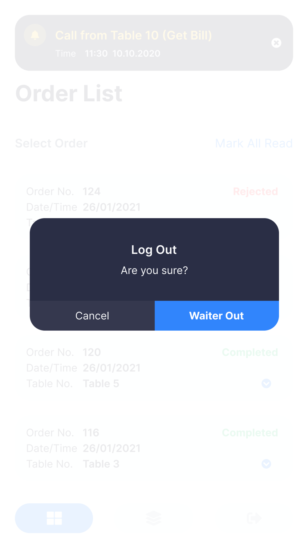 6. Receive push notifications when a client needs the bill.Using this app, the waiter will optimize their working flow and will increase productivity during the shift.