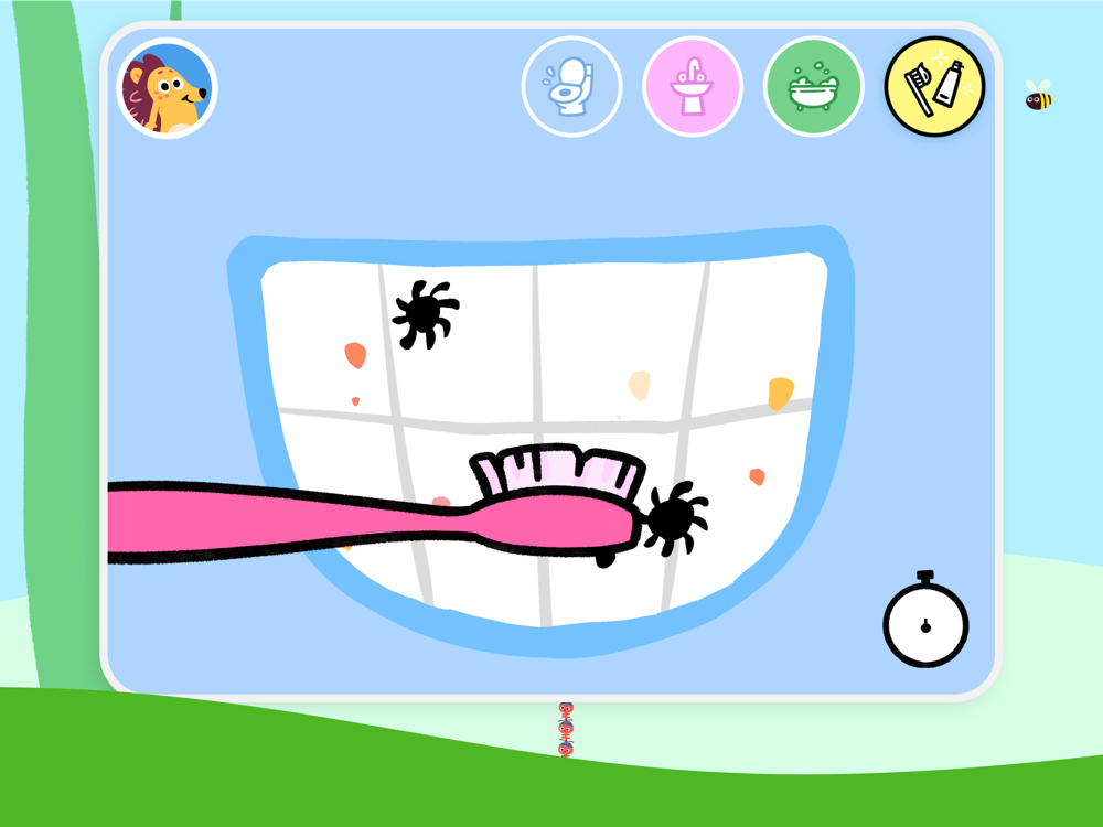 I det afskærmede forældreområde kan du sætte Minisjang-appen til at gå i dvale på det tidspunkt, du ønsker. Når appen går i dvale, toner skærmen ned og Børste bliver træt og skal lægges i seng for at sove. På den måde kan du som forældre sætte en passende skærmtid for dit barn.