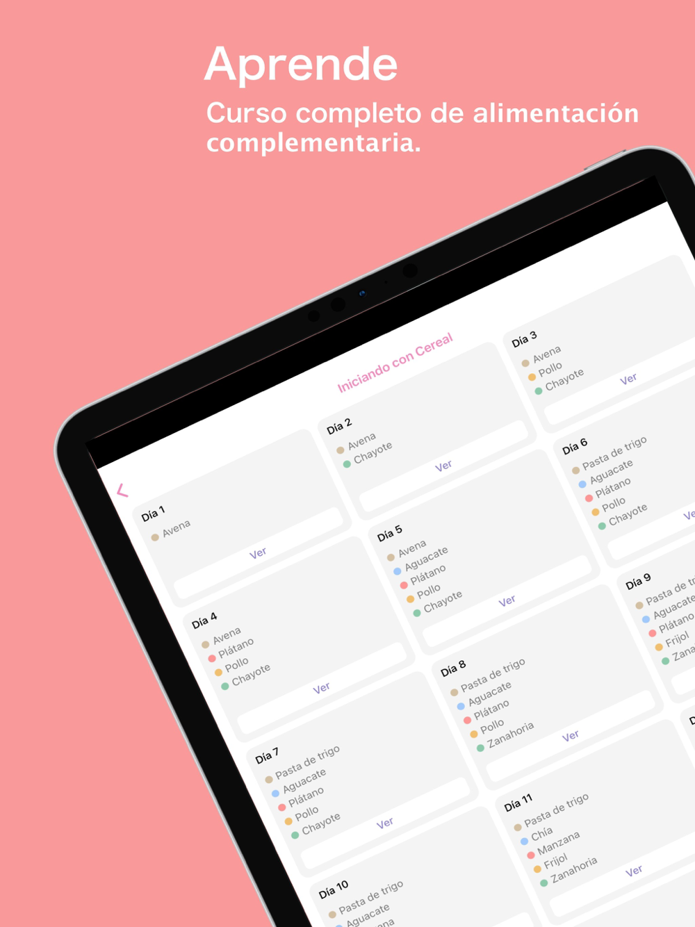 In the app you will find calendars and a complementary feeding guide, as well as detailed instructions to present each of the foods to be introduced.