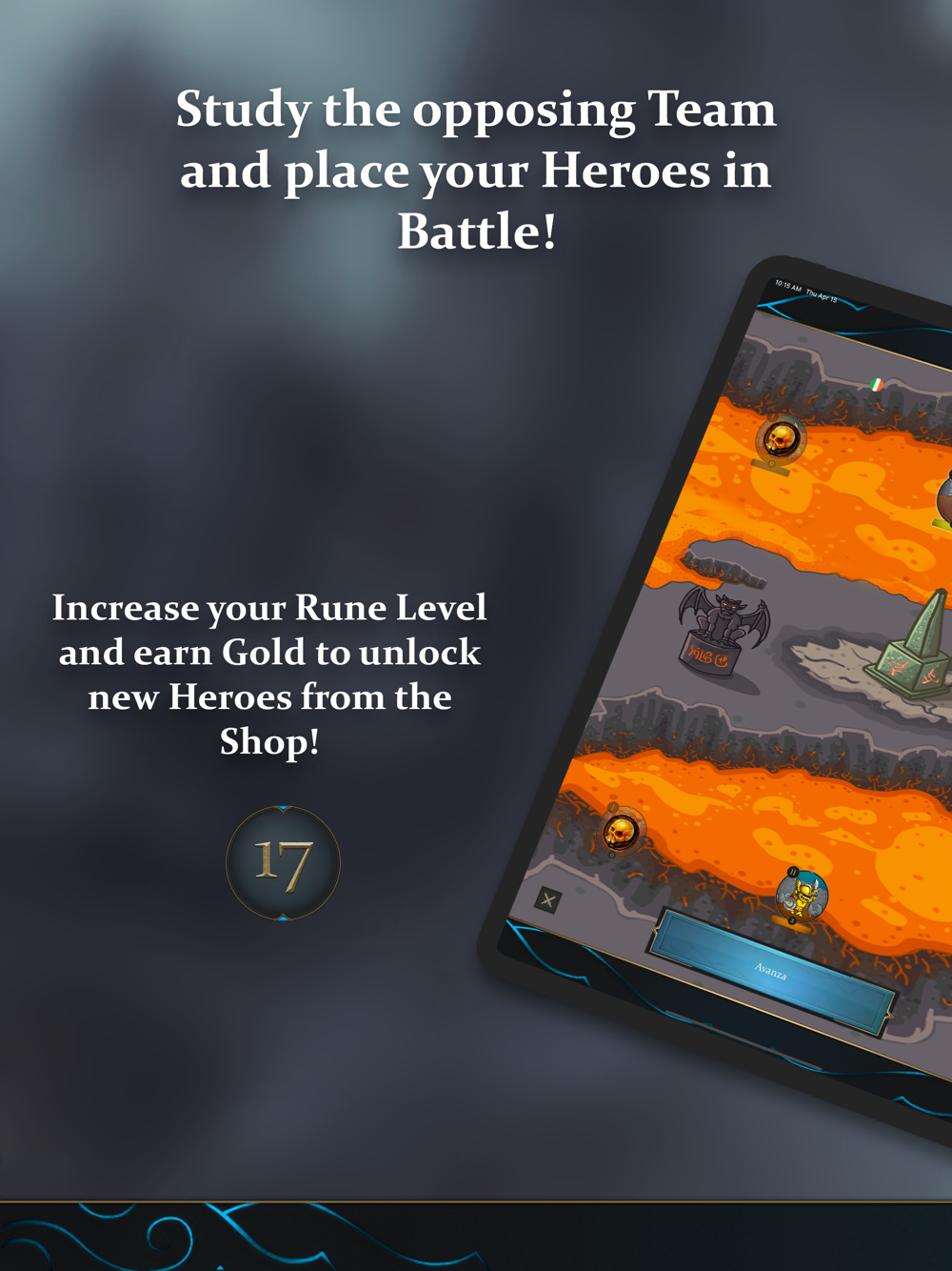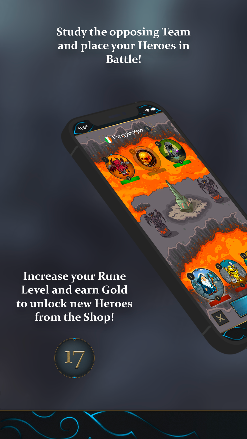 Face opponents in 3v3 Battles, earn money to unlock new Heroes and increase your Rune Level!