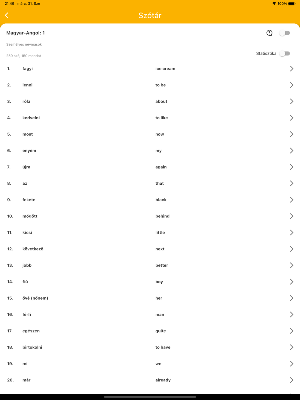 Szabadon megadhatod, hogy az app pontosan milyen szavakat és mondatokat tanítson neked és milyen gyakorisággal találkozz velük.
