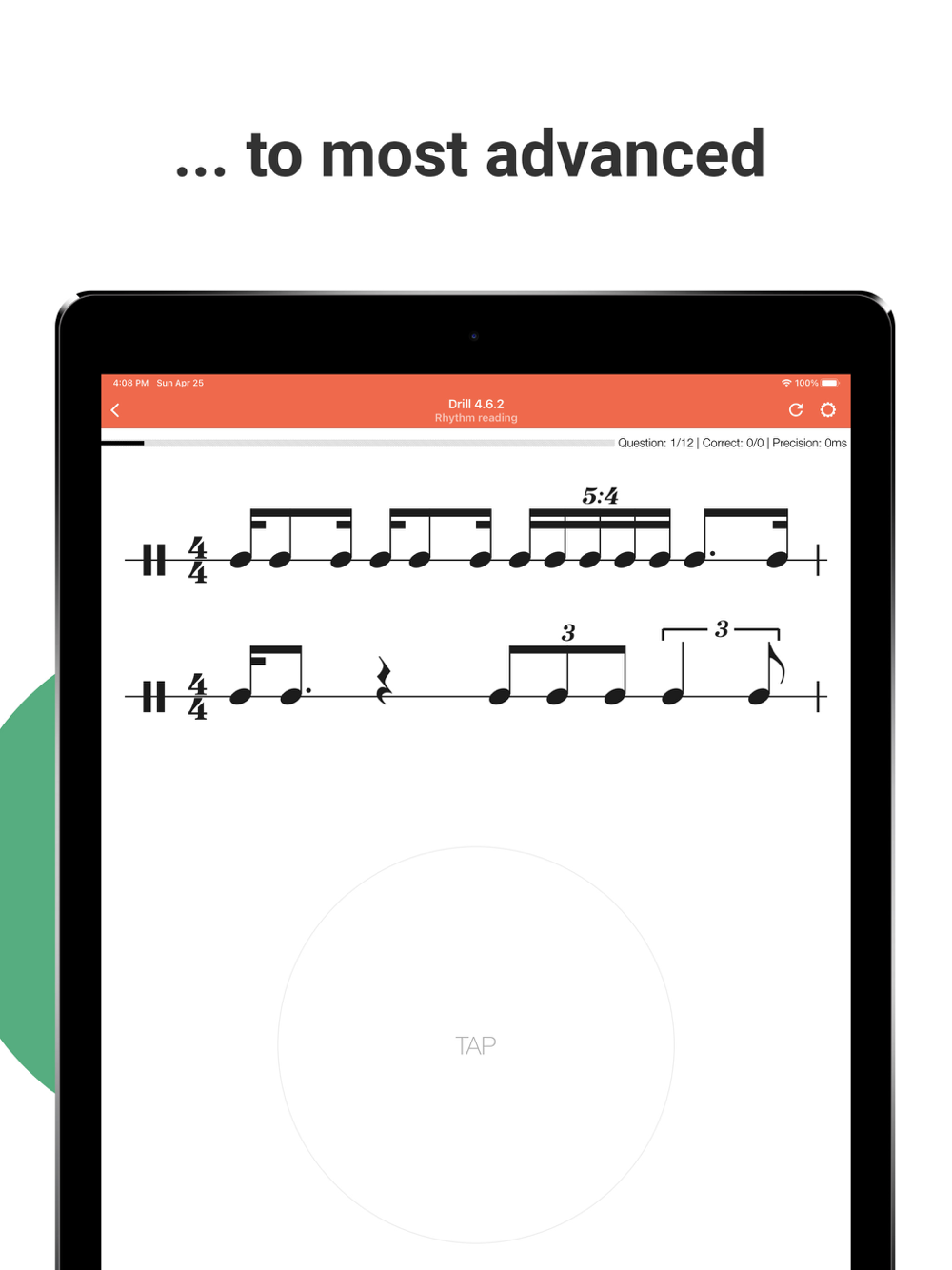 • Most of the drills are randomly generated, enabling you to practice the studied rhythms as many times as needed
