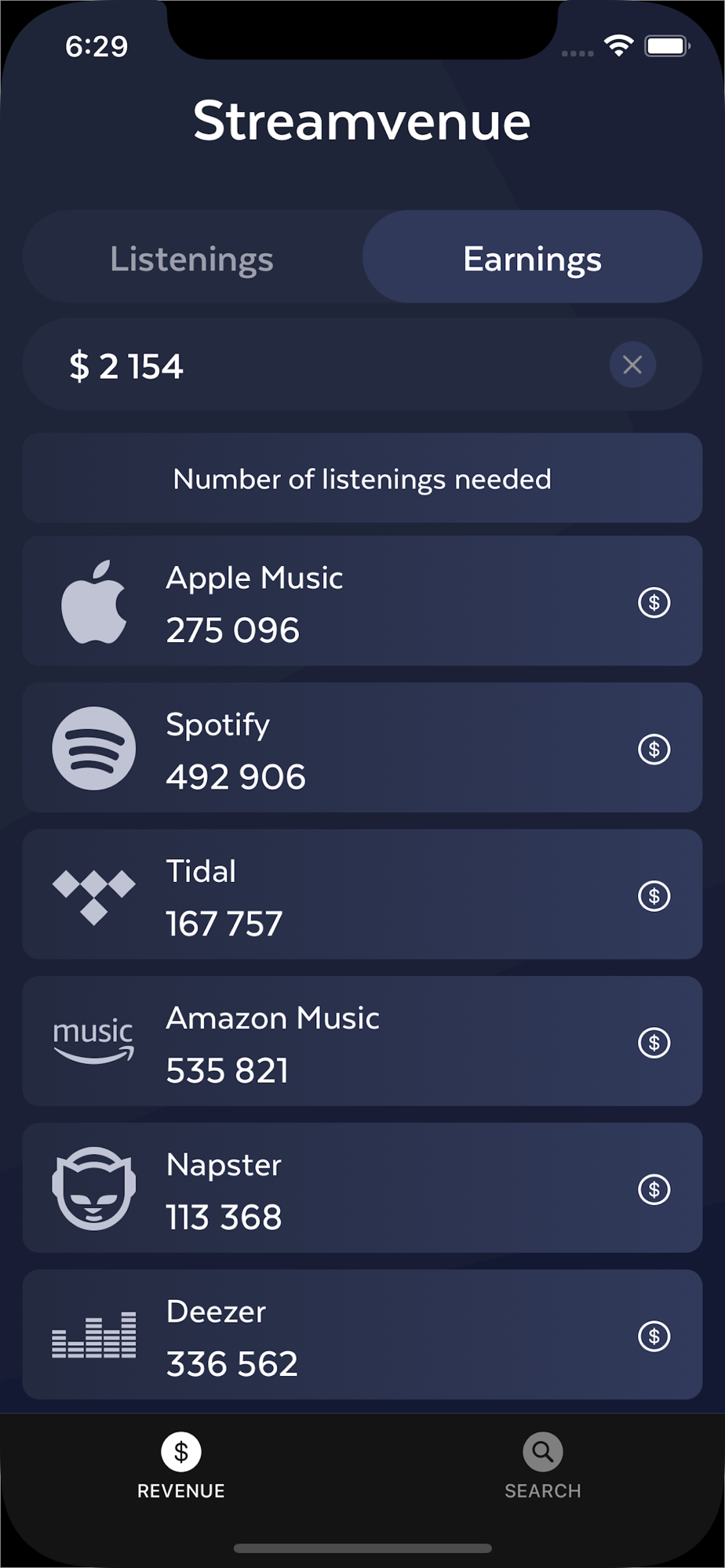 Calculate how many listenings your music would need to earn the sum of money you want.