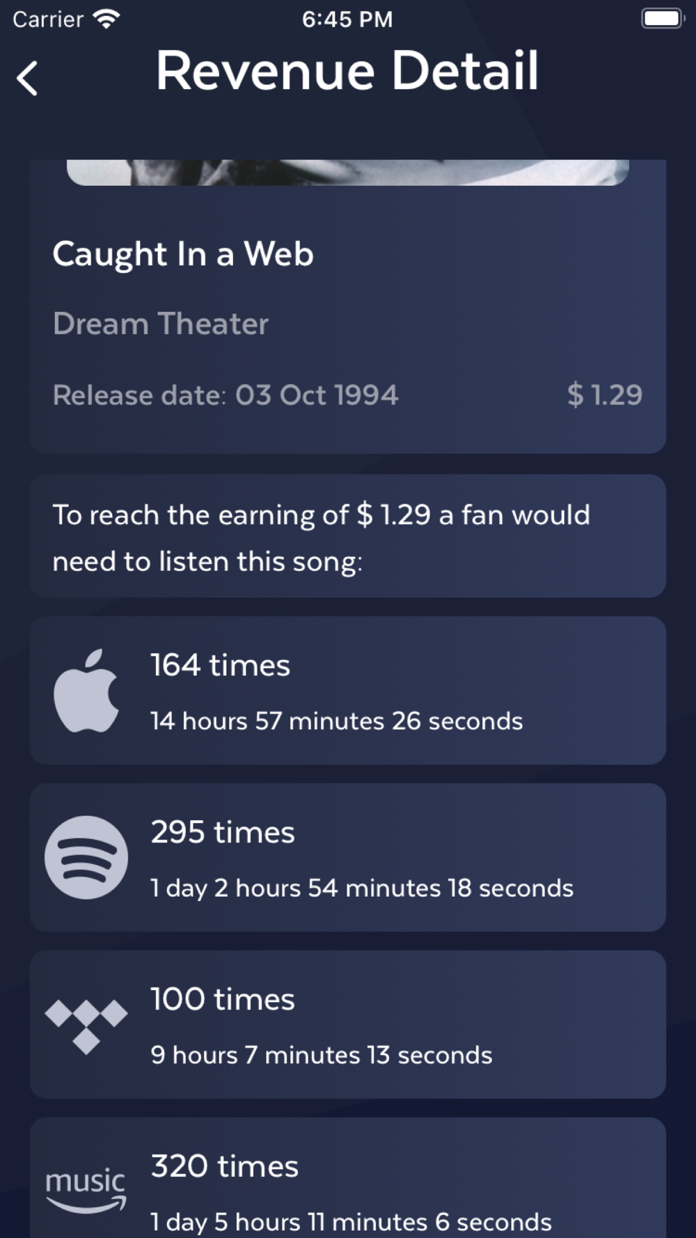 Calculate how long you have to listen your favorite song to let your favorite artist earn the cost of the song or the album itself!