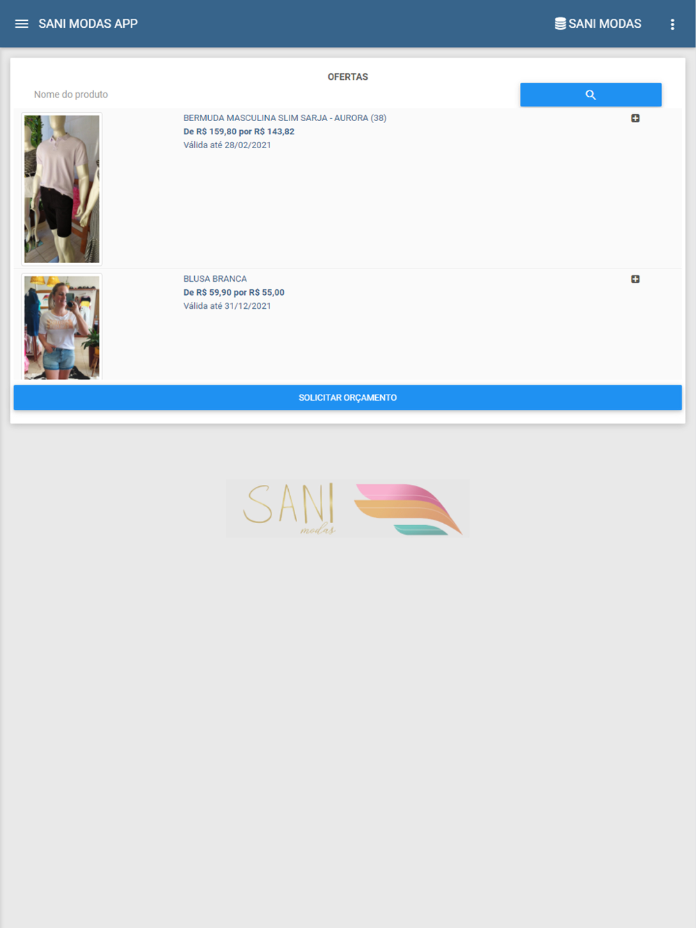 O aplicativo é mais um canal de comunicação entre a Sani Modas e seus clientes onde permite que os usuários recebam informações de produtos de forma fácil e prática.