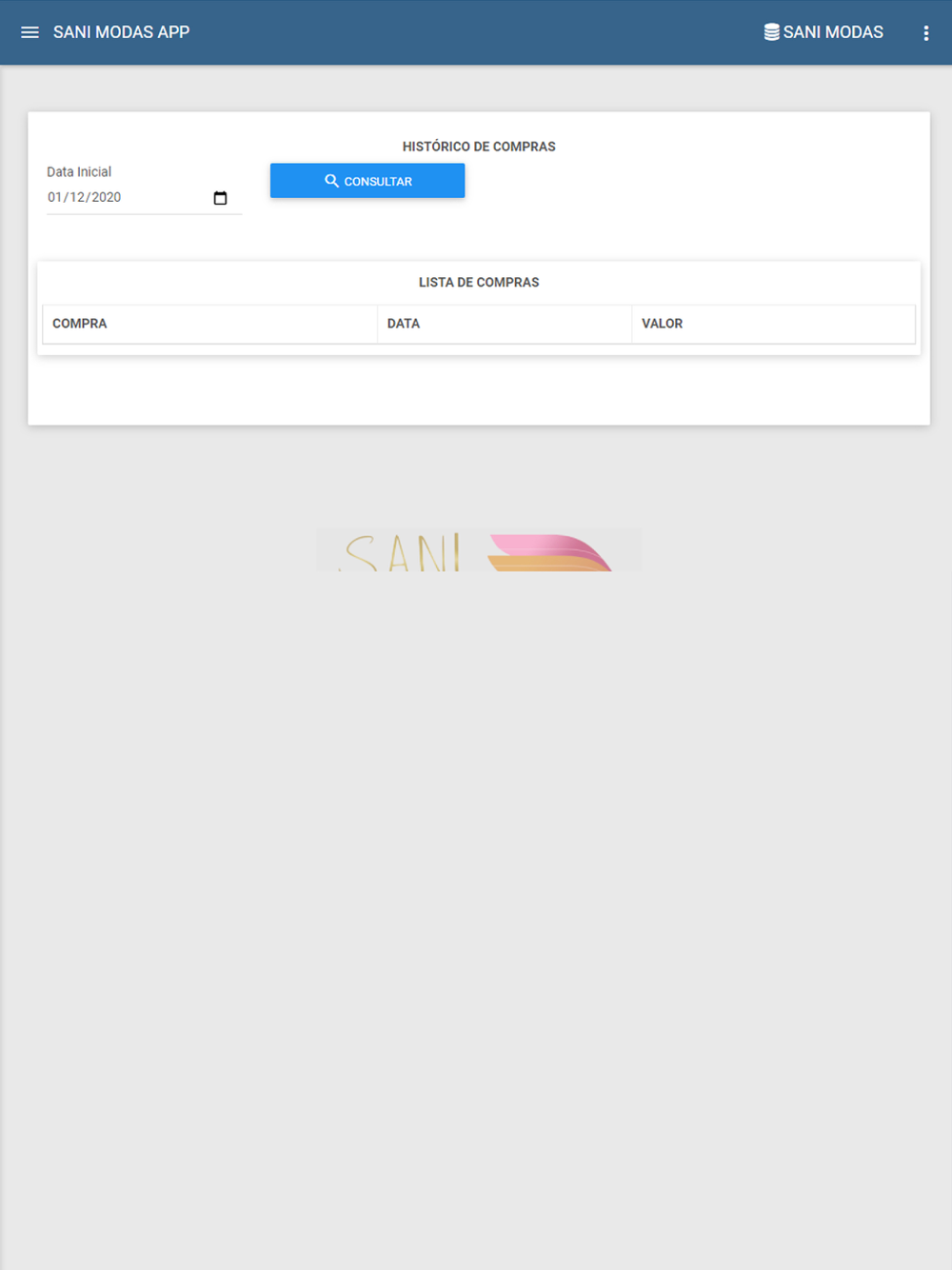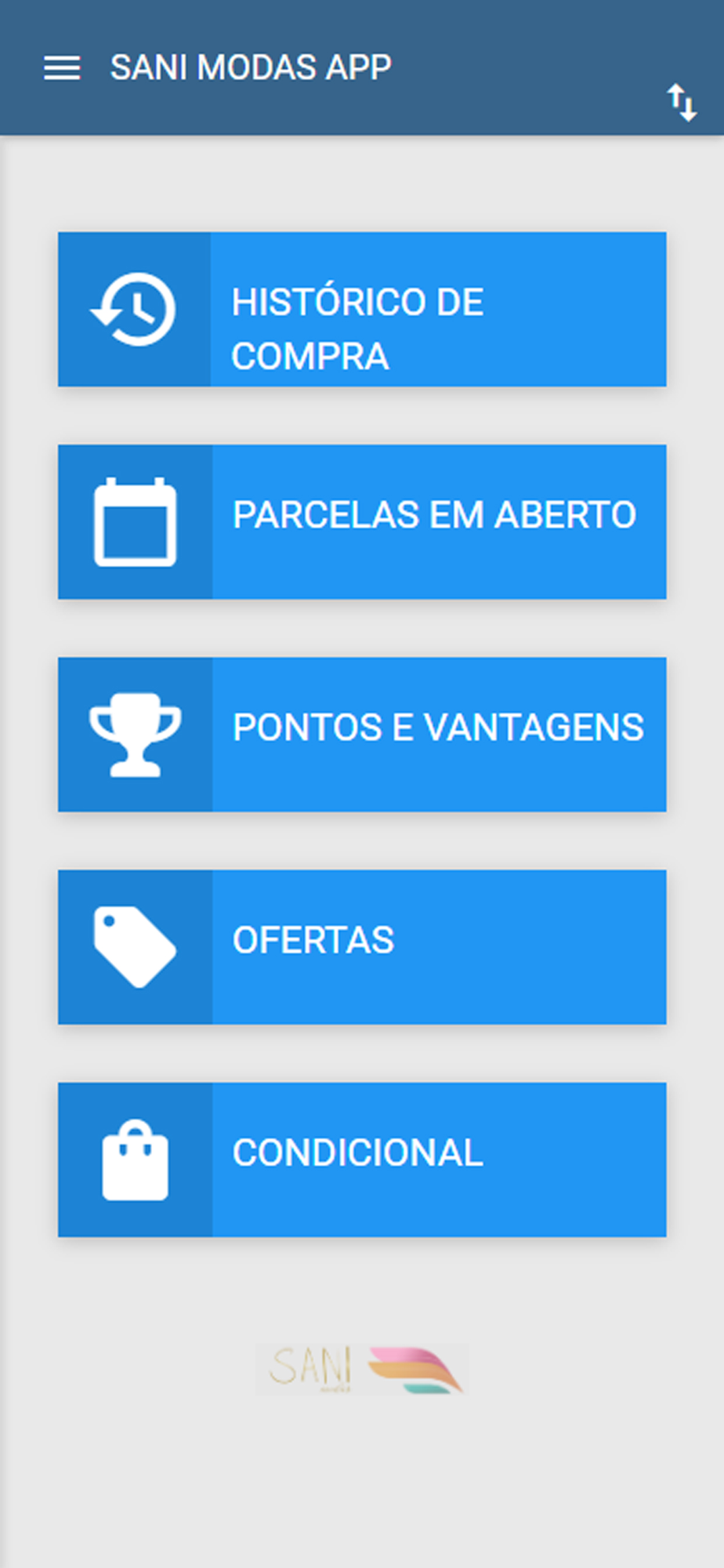 É um aplicativo da empresa Sani Modas para relacionamento com seus clientes. Através do aplicativo os usuário podem consultar as ofertas disponíveis, solicitar levantamento de preços, consultar histórico de compras, consultar situação dos condicionais, consultar pontos de fidelidade e consultar parcelas em aberto.