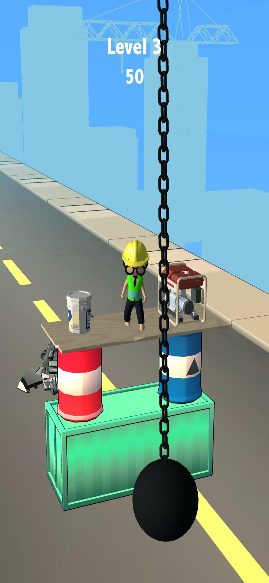 Our employee is stuck on the stack of construction products. The stack is unstable, it could flop over! Tap on the object that you want to remove. However be careful, that one could be the one that keeps the balance. One tap and boom! Everything fell on the ground. Every move needs attention, you should choose the order wisely. Otherwise our employee flop over and can’t make it to the ground safely.