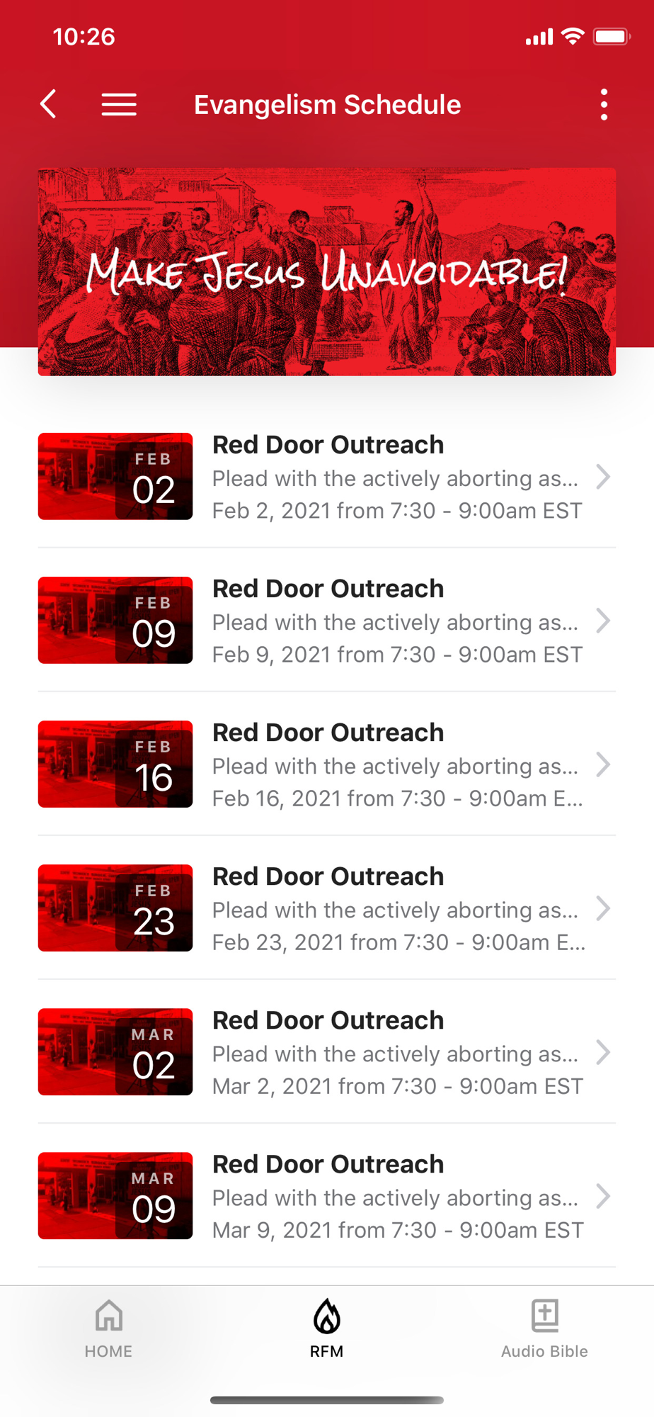This app will help you stay connected with the day-to-day life of our church. With this app you can: watch or listen to past messages; stay up to date with push notifications; share your favorite messages via Twitter, Facebook, or email; and download messages for offline listening.