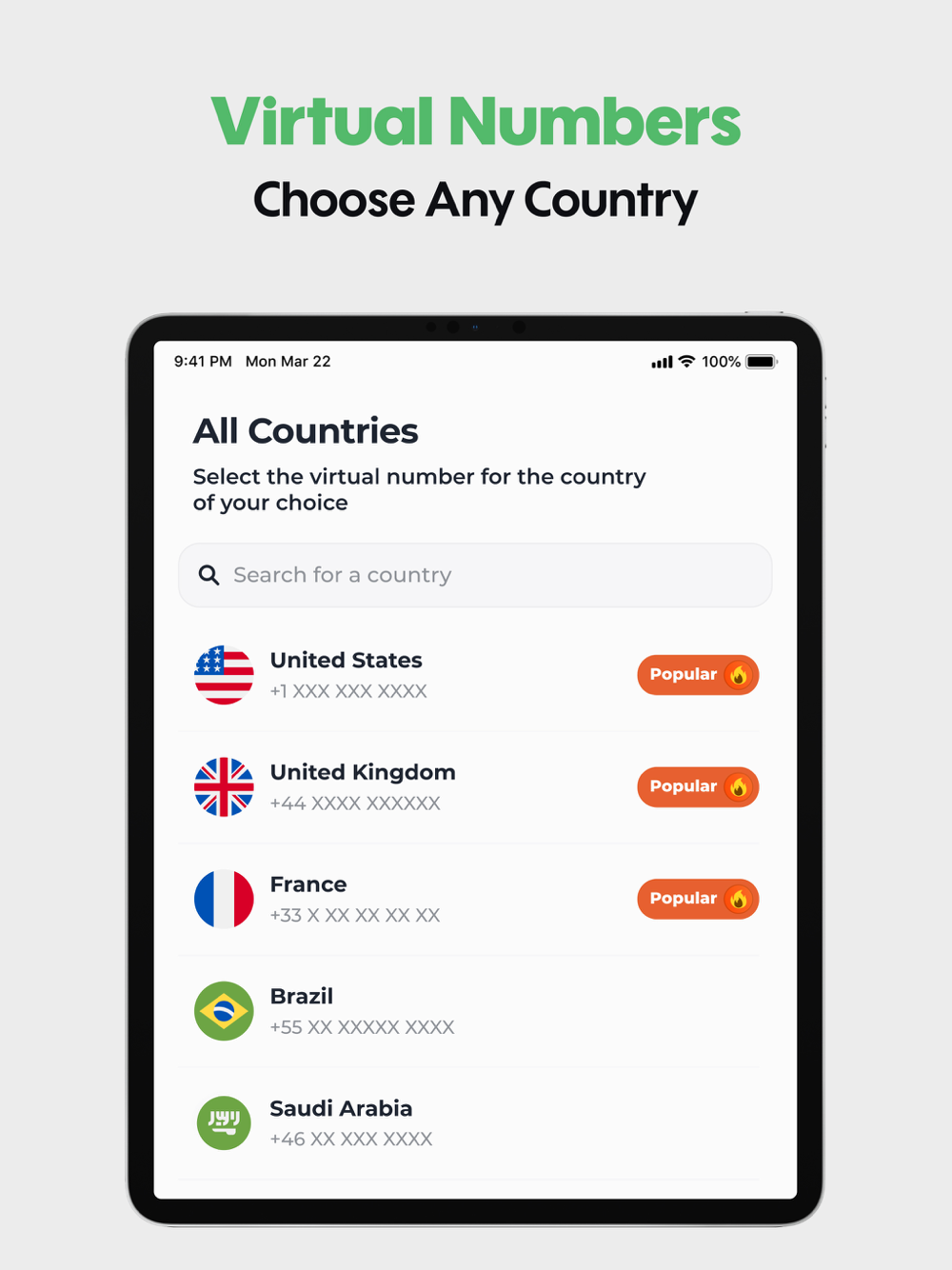 Connect with friends, family, and clients from around the world! Our app offers a wide selection of virtual numbers from various countries, enabling you to establish a local presence and make international communication more accessible and affordable.