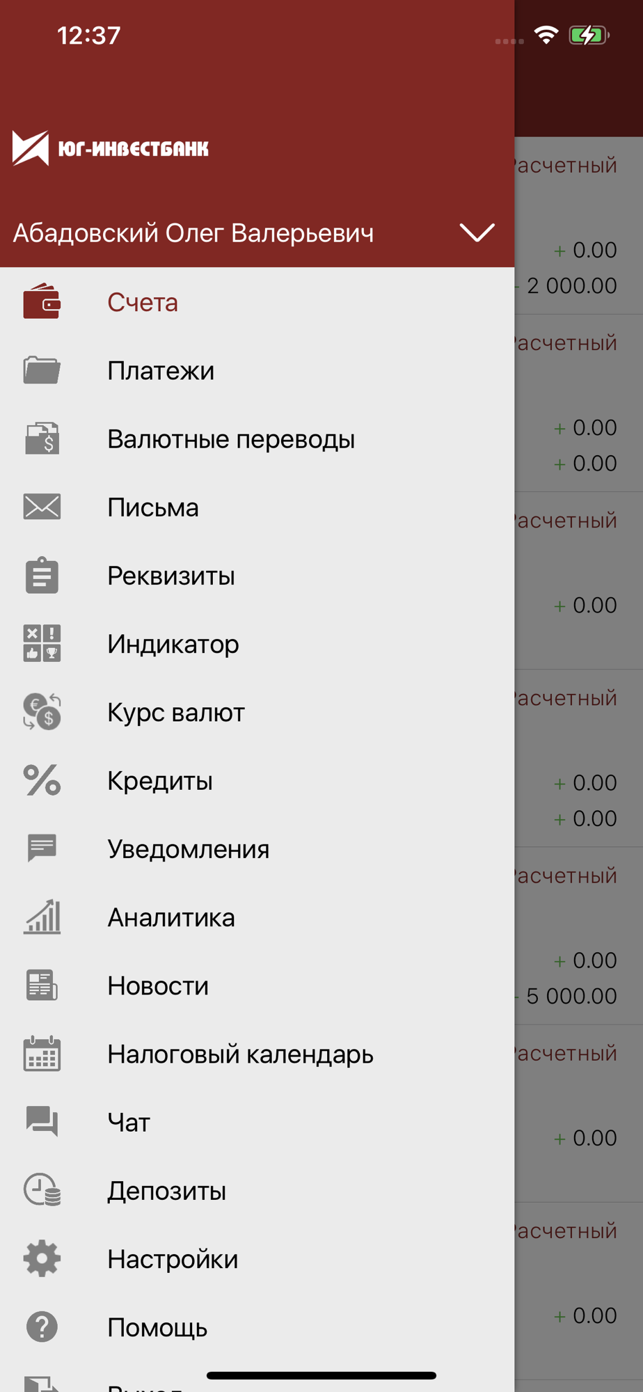 Основные функции приложения ЮГ-Инвестбанк Бизнес: