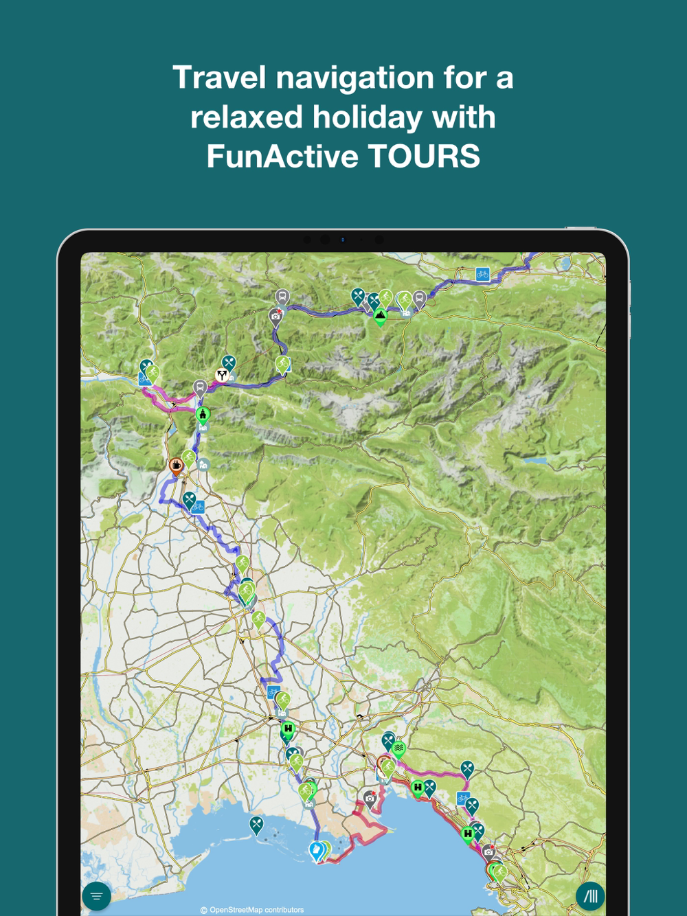 With FunActive TOURS, the specialist for holidays by bike, on foot or on cross-country skis, a carefree active holiday awaits you. Careful planning and preparation of the routes is the basis for the creation of our travel documents and maps. This includes our APP, which allows you to download all relevant information such as routes, accommodations and important points along the route for your booked cycling trip onto your smartphone in just a few steps.