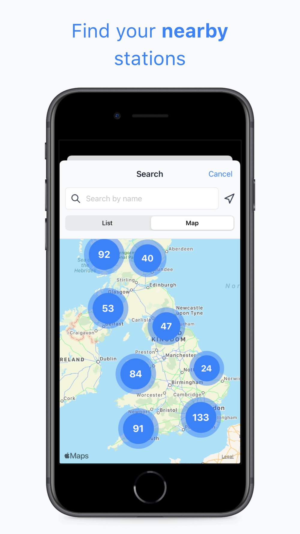 + Find your nearby stations, search by name, or view all on an interactive map