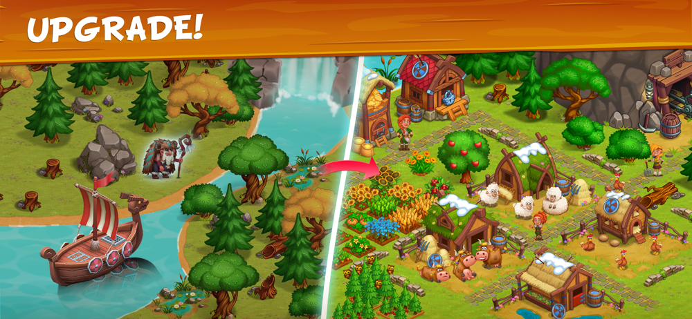 Hay! Welcome to North Viking Island! Vikings, dragons, ships and a little magic wait for you here. Build your own Viking farm in north lands, earn coins, harvest crops, feed animals and even grow up a cute little dragon together with a brave Viking girl.