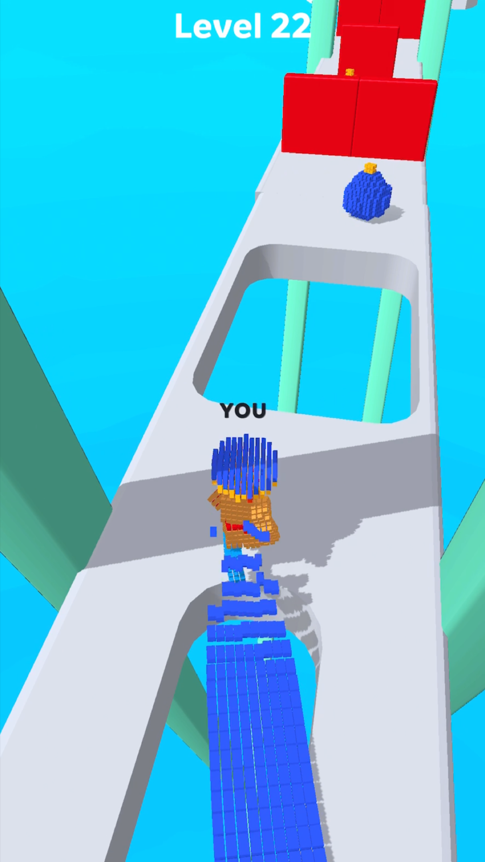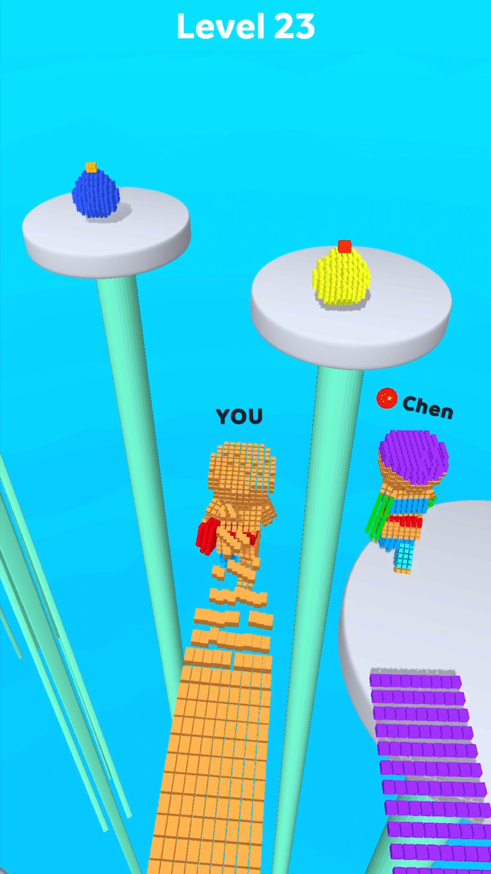 Spend Cubeman pieces to walk in the air, release to shoot and destroy obstacles and win the race!