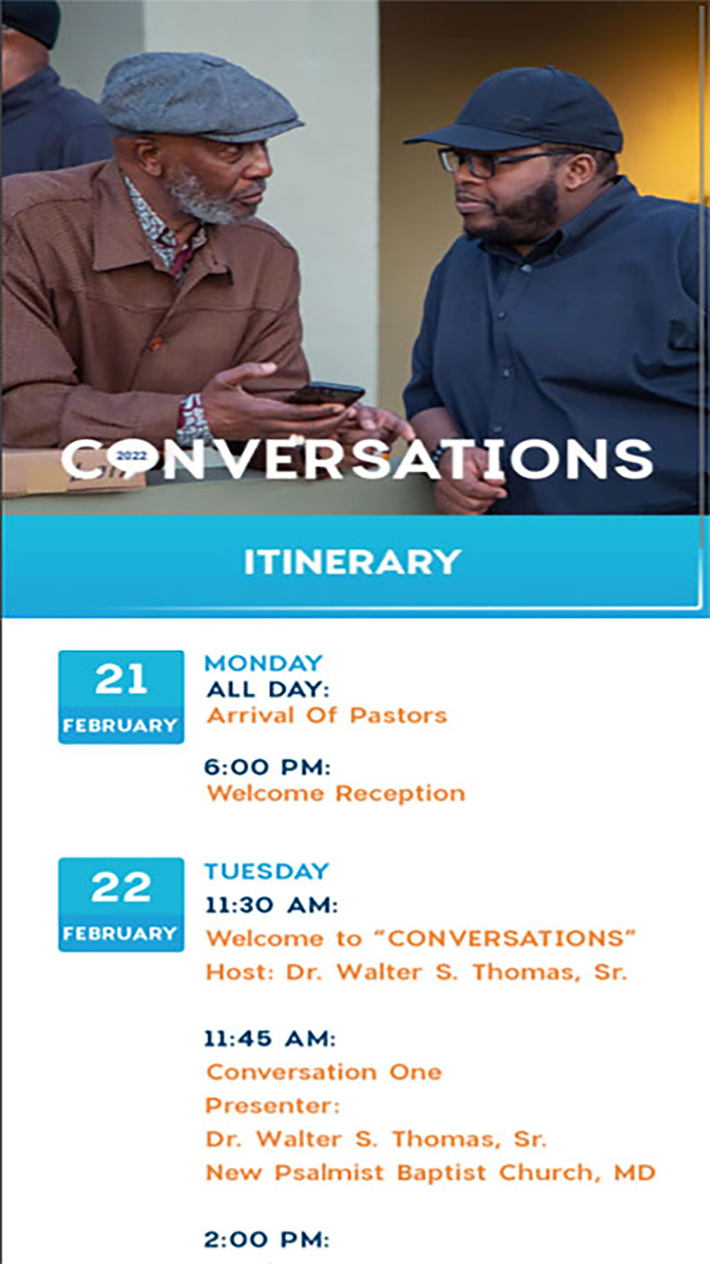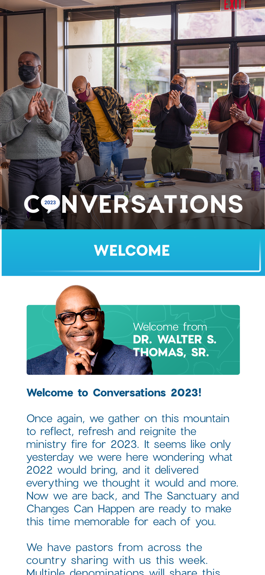 The official Conversations app, brought to you by The Church Online, LLC. The 2023 conference is headlined by various speakers including Bishop Walter S. Thomas, Sr.