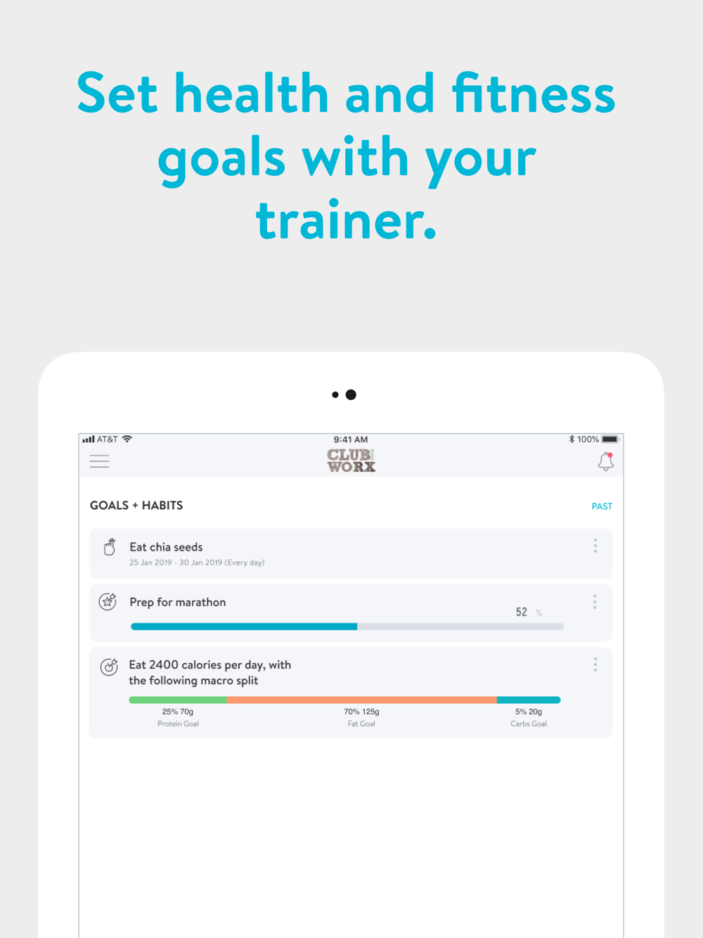 With the ClubWorx Trainer App, you can start tracking your workouts and meals, measuring results, and achieving your fitness goals, all with the help of your personal trainer.
