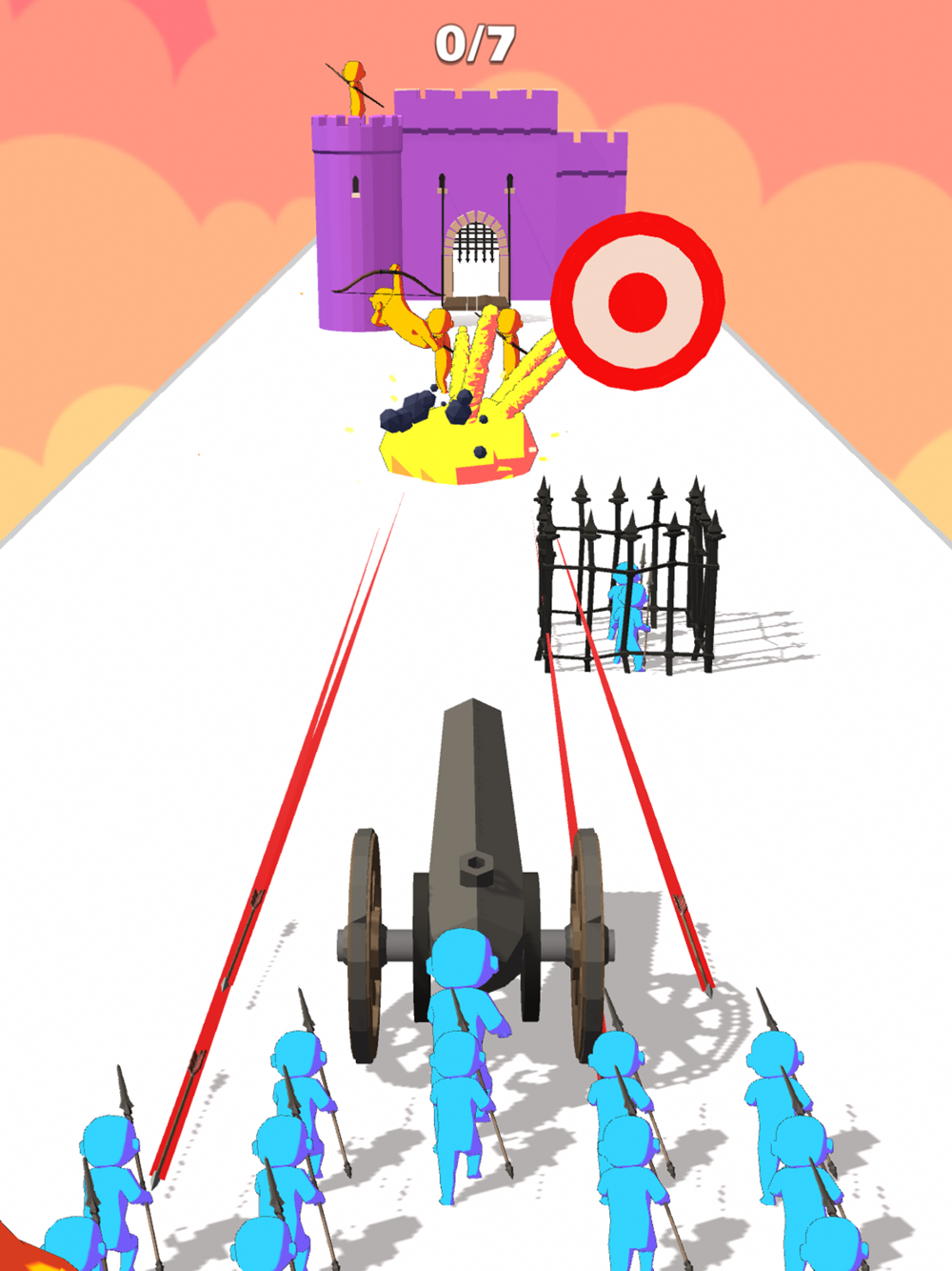 Blow everything away with your cannon! Will the enemy archers take you out or can you and your comrades push the cannon to the enemy base and claim the castle?