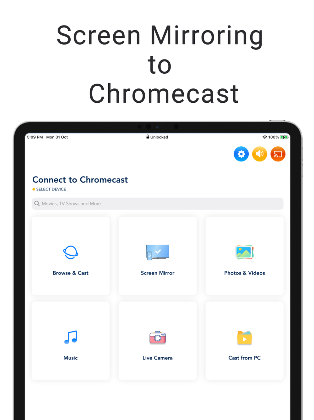 Just tap the cast icon & select your Chromecast TV. Enjoy streaming all on your big screen. Please make sure your Chromecast TV is turned on and connected to the same Wifi network as your iPhone / iPad.