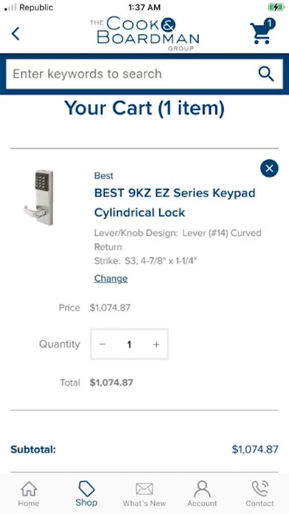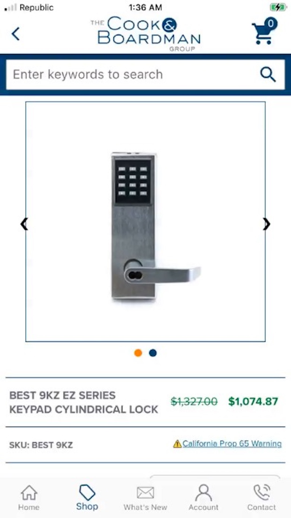 Convenient and on-the-go access to the Nation’s leading supplier of Door & Door hardware products. Instantly access nationwide product availability to help you get the job done! Create shopping lists to quickly reorder from your most frequently purchased products. Find a Cook & Boardman group branch near you. View and manage quotes from the palm of your hand. Register for a free account and gain access to more than 25,000 products.