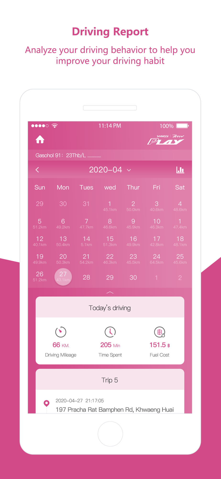 Every journey of your vehicle, including the travel time, mileage, fuel cost, and trajectory will be recorded and send to your mobile.