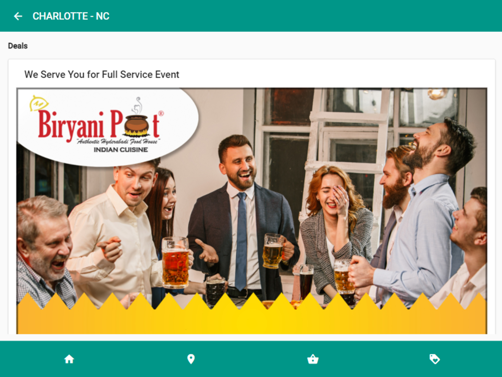 Biryani Pot Corporate is a mobile application intended for very important patrons of Biryani Pot @ San Antonio, TX and Charlotte, NC supporting online ordering, deals and loyalty