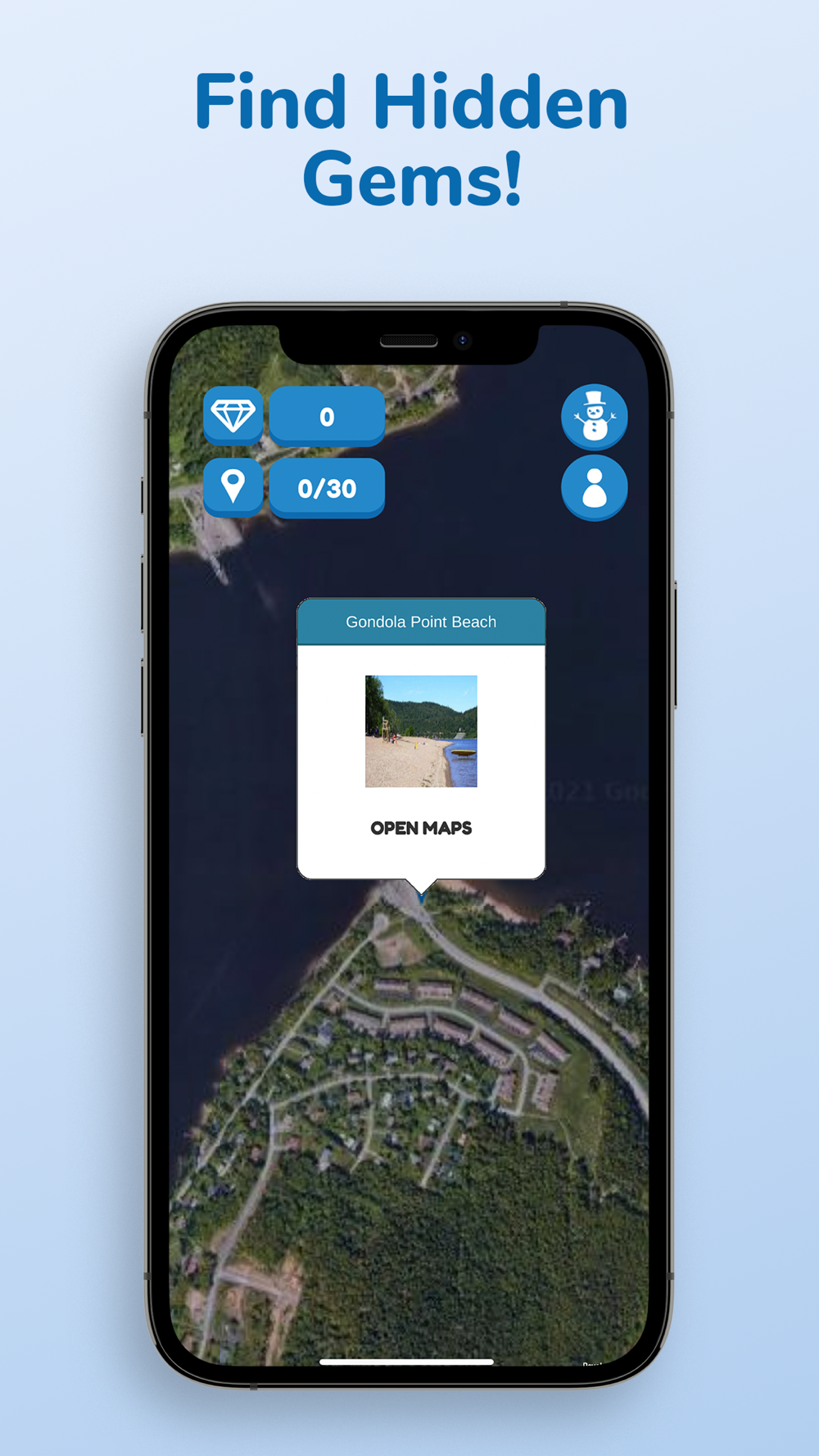 To play - download the app then register for an account (or play as a guest but we unfortunately cannot award the prize to a guest as we will not have your contact information in that case). Next, you will be brought to the map showing all 30 checkpoint locations! Visit as many as you can throughout the months of February and March 2021. Each checkpoint has 9 gems hidden around the area. A compass will help you find the virtual gems. After collecting enough gems, you will be able to buy hats, scarves, faces and noses for your virtual snowman, build him and take a photo standing with him. Don't forget to share your photo with #fundywinterfest!