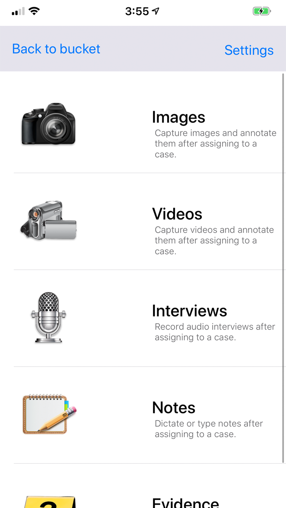 The interface makes it quick and easy to depict and describe events in the field and upload digital files directly (4G) or via agency Wi-Fi to the cloud or agency evidence management application.