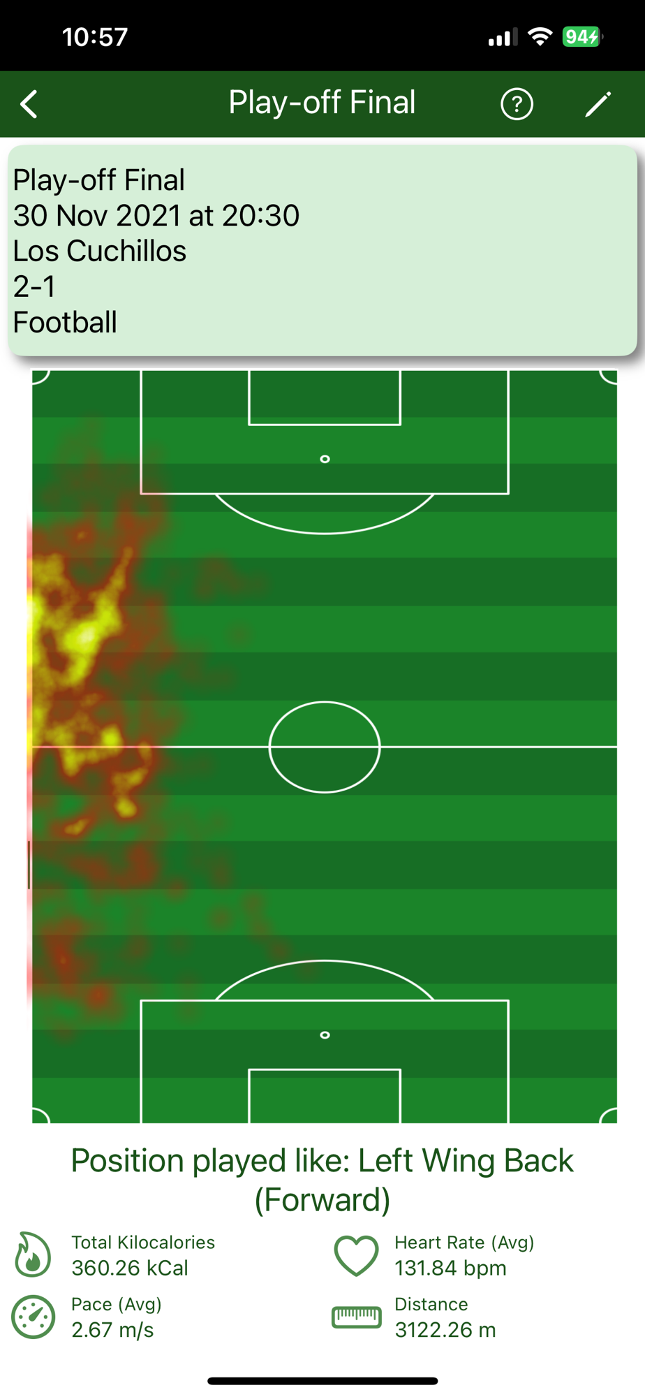 • Vivid heatmaps : Instantly see where you spent the most time on the pitch, with vibrant, color-coded visuals. Red zones highlight your hot spots, while green areas show where you’ve spent less time.